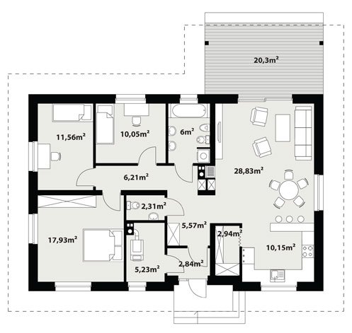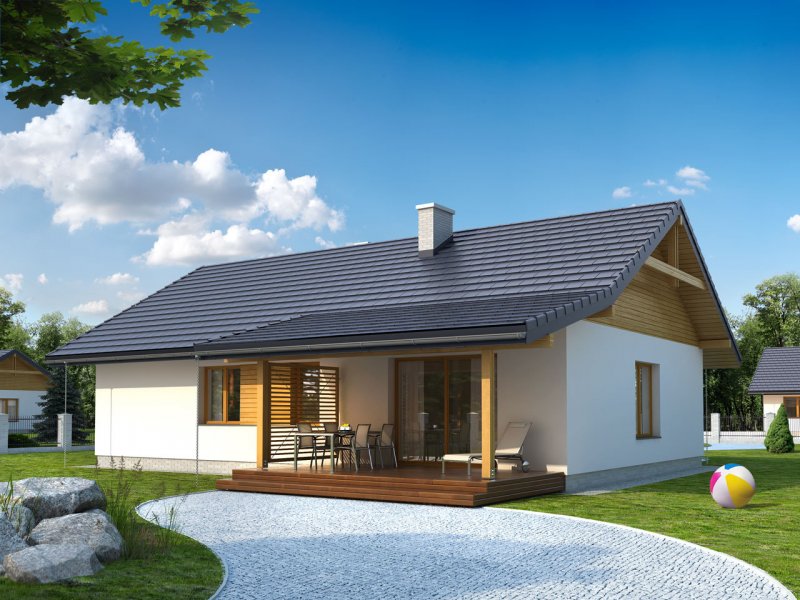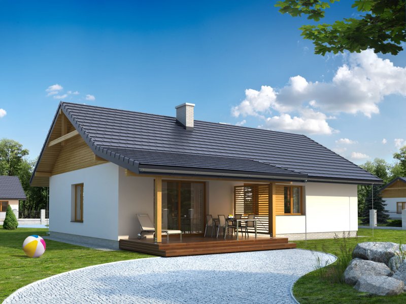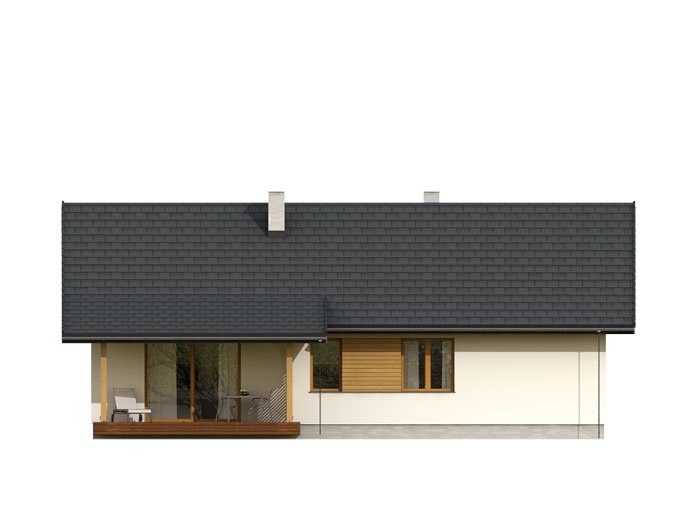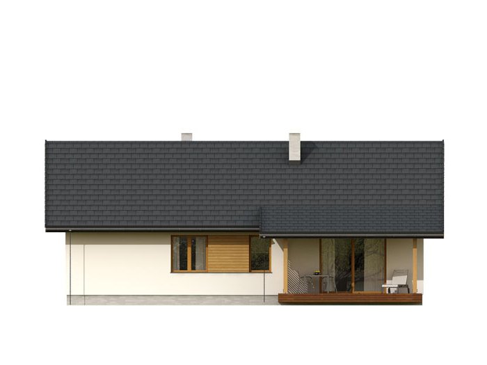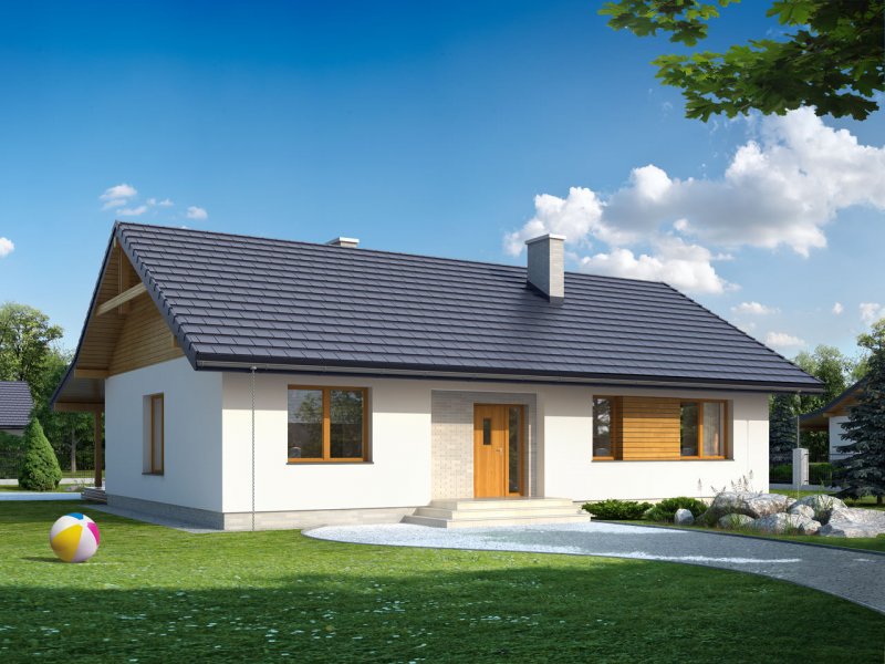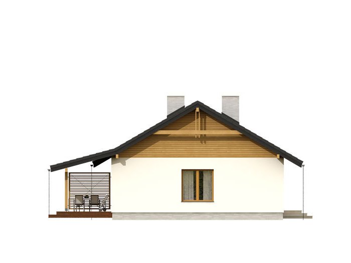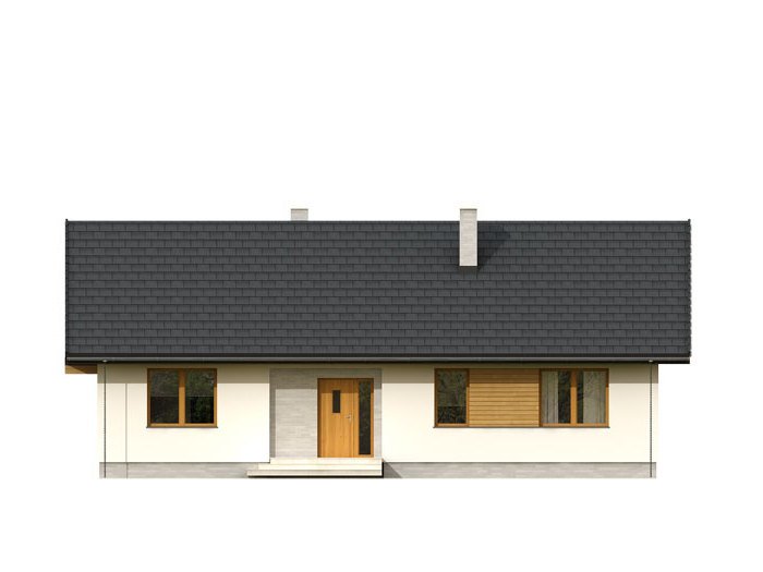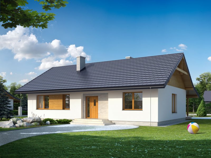 Dom jednorodzinny, parterowy, niepodpiwniczony. Wygodny, funkcjonalny, z optymalnie rozplanowaną przestrzenią. Przestronny salon połączony z kuchnią otwiera się na duży, zadaszony taras. Posioda spiżarnię dostępną z kuchni oraz kotłownię z możliwością zastosowania kotła na paliwo stałe. Dom jest tani i prosty w budowie a przez zastosowanie rozwiązań energooszczędnych również niedrogi w utrzymaniu.