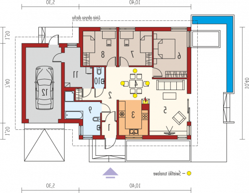- Min. wymiary działki 22.70x18.40 m