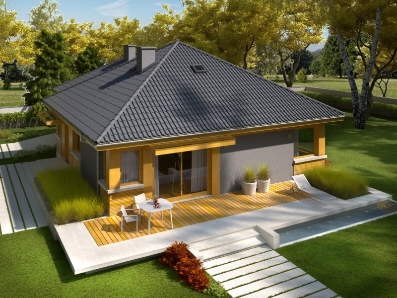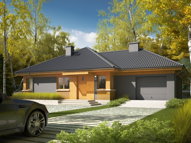 Anabela G1 to dom, który łączy aktualne trendy w architekturze ze sprawdzonymi rozwiązaniami funkcjonalnymi. Zgrabną bryłę budynku zdobi atrakcyjna kompozycja elewacji – elegancja szarości w duecie z naturalną urodą drewna od pierwszego wejrzenia czaruje swoim intrygującym urokiem. Dzięki zastosowaniu świetlików tunelowych do wnętrza swobodnie przenika naturalne światło, które opromienia przestrzeń jadalni swoim słonecznym ciepłem. W sercu domu usytuowano nastrojowy kominek, którego blask można podziwiać, aż z trzech pomieszczeń.