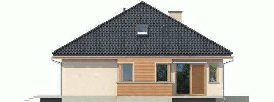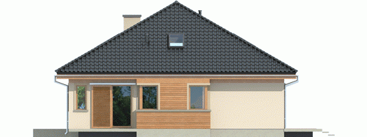 Elewacja: tynk cienkowarstwowy mineralny i okładzina drewniana