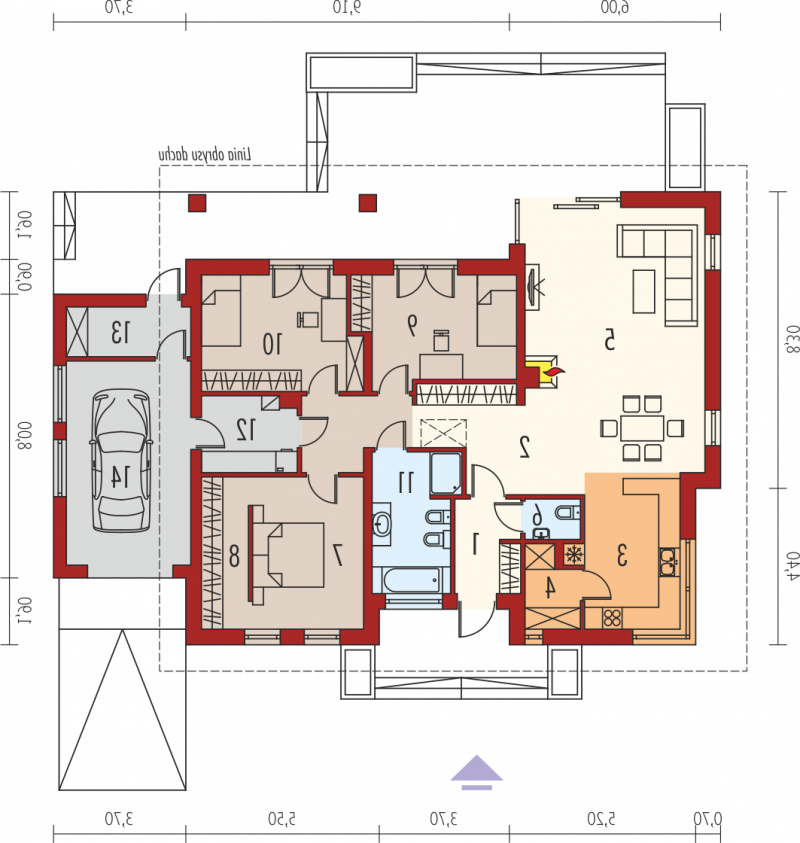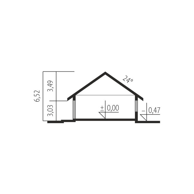 - Kąt nachylenia dachu 24.00°