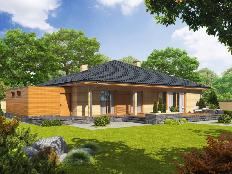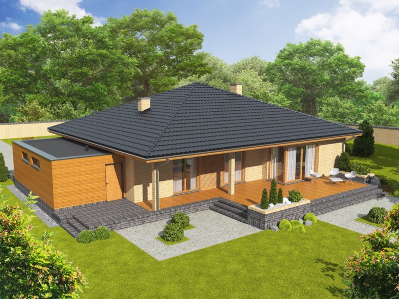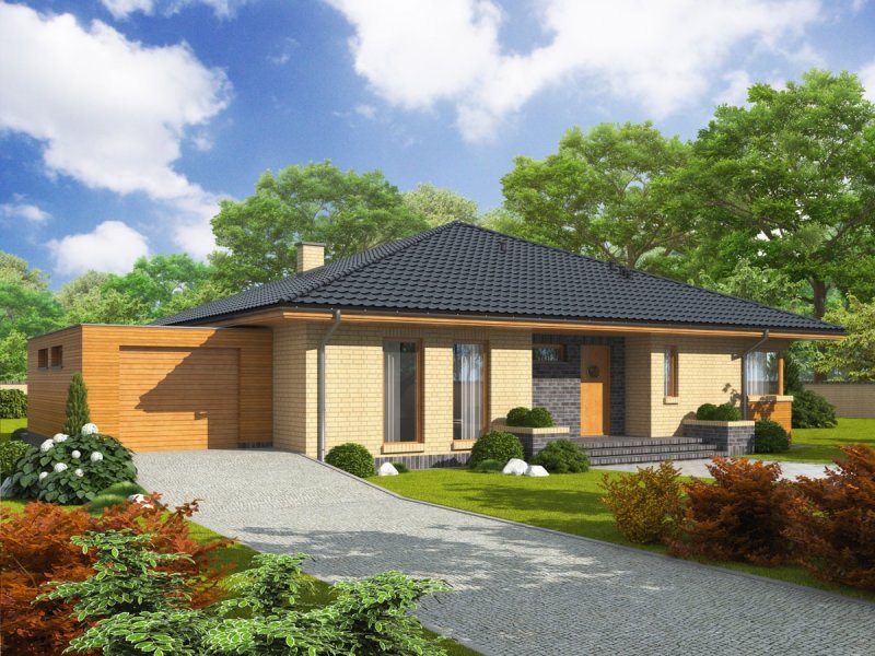 Dom parterowy, niepodpiwniczony z garażem jednostanowiskowym. Przeznaczony dla 4-osobowej rodziny. Strefę dzienną tworzą: salon z kominkiem, jadalnia oraz kuchnia ze spiżarnią. Znalazła się tu również toaleta oraz duże pomieszczenie gospodarcze. Strefę nocną tworzą trzy wygodne sypialnie, w tym jedna z własną garderobą orz obszerna łazienka. Przy garażu zaplanowano praktyczny składzik na wszelkiego rodzaju domowe sprzęty i narzędzia. Dom Antonio G1 to propozycja dla inwestorów, którzy cenią klasykę, doprawioną oryginalnymi akcentami. Udana kompozycja materiałów zastosowanych na elewacji tworzy imponujący efekt wizualny – szykowny klinkier harmonijnie łączy się z ciepłym odcieniem drewna, które otula wybrane elementy budynku oraz garaż. W środku, na domowników czeka przestronne i przytulne wnętrze o elastycznym układzie funkcjonalnym, który z łatwością dopasuje się do rytmu życia rodziny. Atrakcyjną częścią domu jest rozłożysty taras, wzbogacony kolumnami. Antonio to subtelna elegancja w klinkierowej szacie. Istnieje możliwość: – podpiwniczenia budynku – zbliźniaczenia