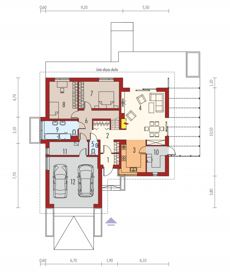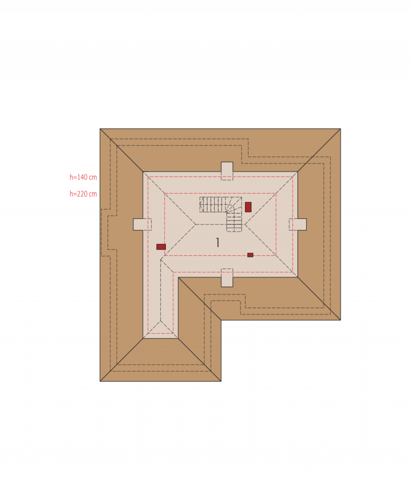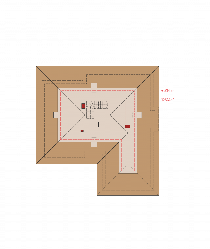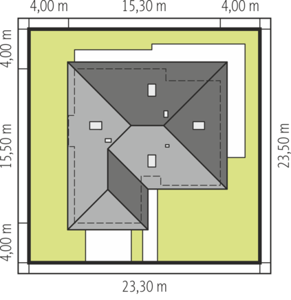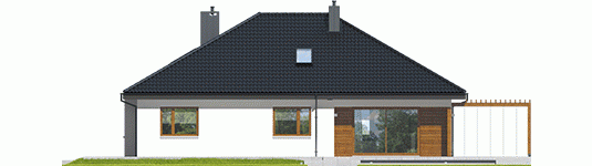 Dach: konstrukcja drewniana, dachówka ceramiczna Röben, w przypadku wykorzystania poddasza jako mieszkalne – ocieplenie dachu: wełna mineralna 30 cm, więźba dachowa dostępna również w systemie prefabrykacji drewnianej