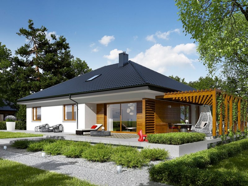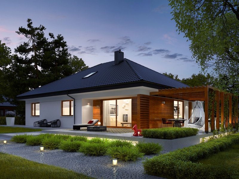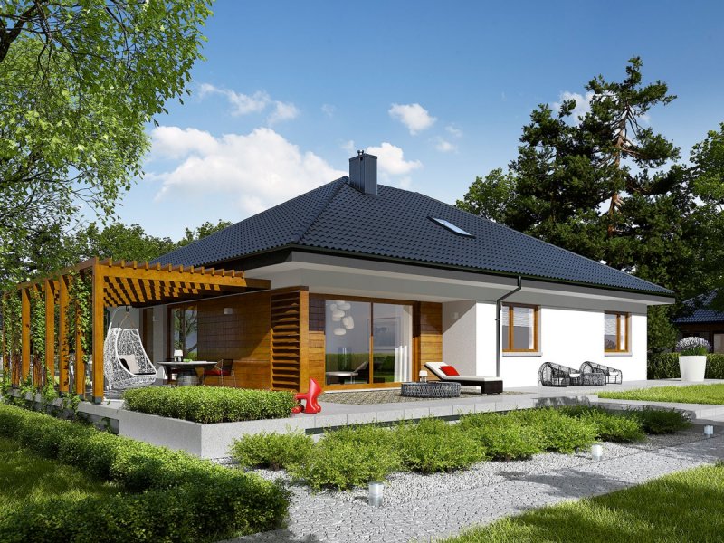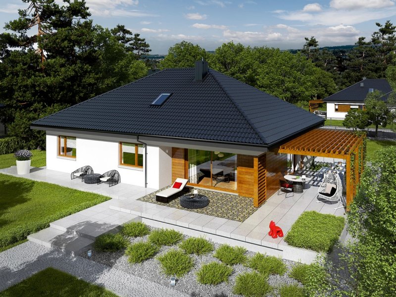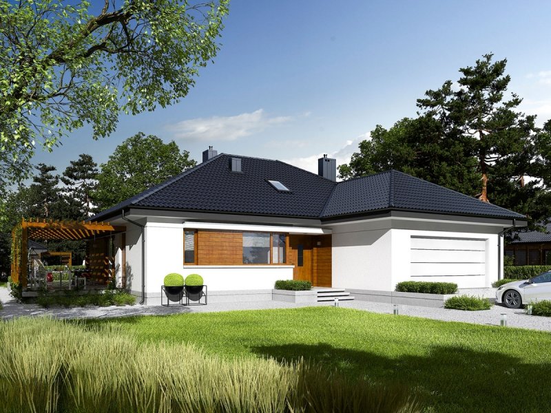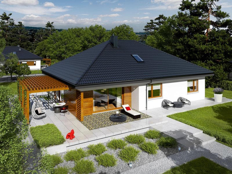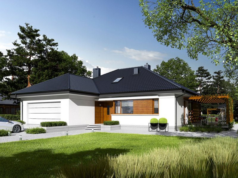 Astrid G2 to nowoczesny dom, zaprojektowany z myślą o rodzinie, która chce mieszkać wygodnie, przytulnie i w harmonii z naturą. Dużym atutem projektu są szerokie przeszklenia, dzięki którym wnętrze wyróżnia jasny i przestronny charakter. Uwagę zwraca również świetnie zorganizowany układ funkcjonalny ze strefą dzienną maksymalnie otwartą na piękno ogrodu.