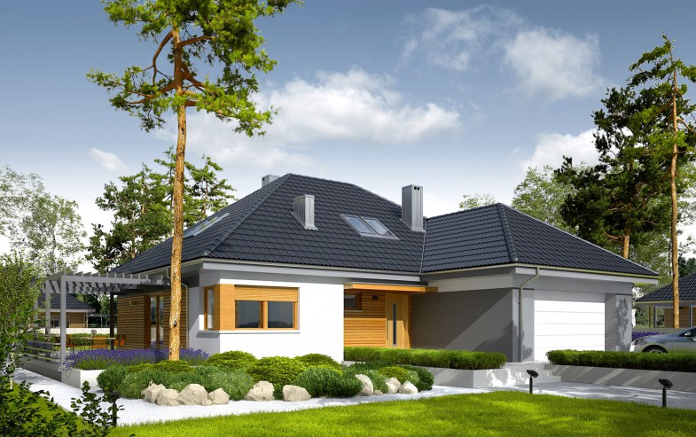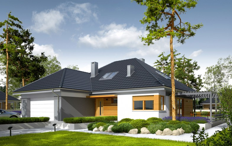 Charakterystyka: Dom parterowy z poddaszem użytkowym, niepodpiwniczony, z garażem dwustanowiskowym