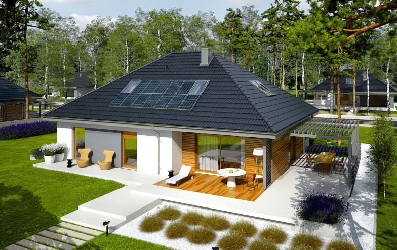 Astrid II G2 to dom zaprojektowany z myślą o rodzinie, która chce mieszkać nowocześnie, przestronnie i komfortowo. Funkcjonalnie zorganizowany układ pomieszczeń gwarantuje domownikom codzienną wygodę, a pomysłowo zaplanowany taras zapewnia idealne warunki do wypoczynku na świeżym powietrzu.
