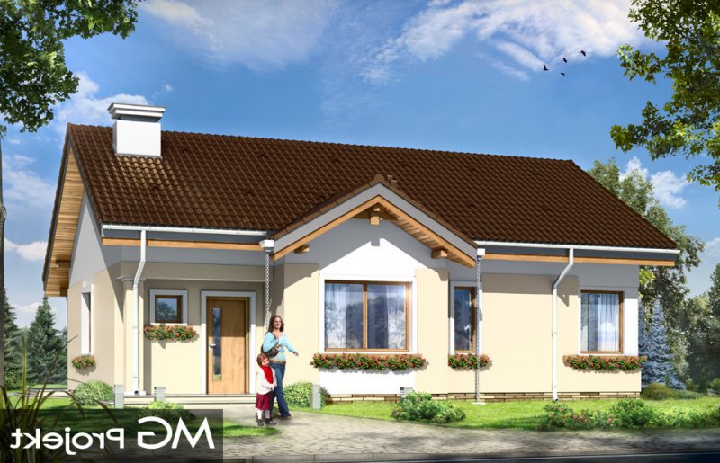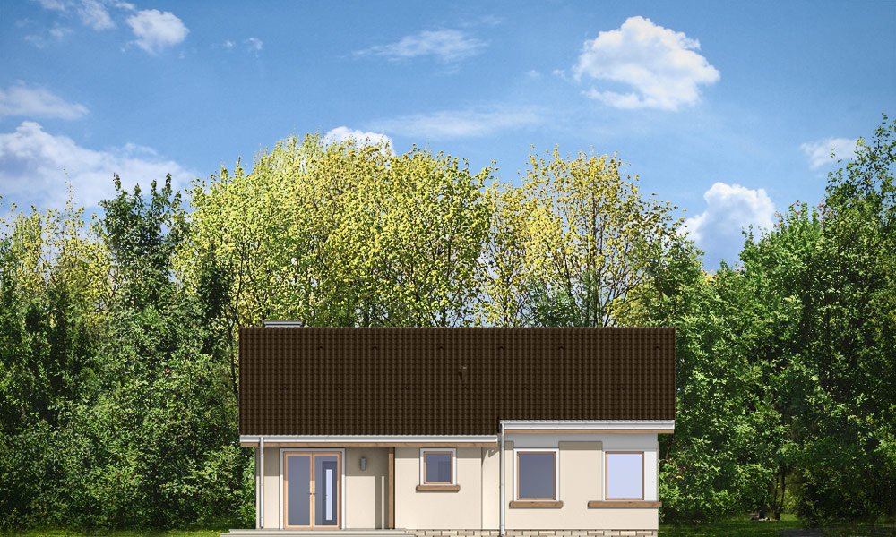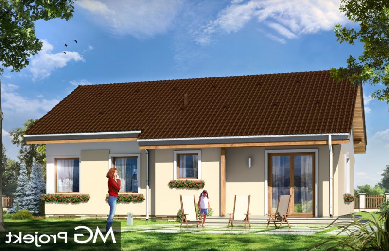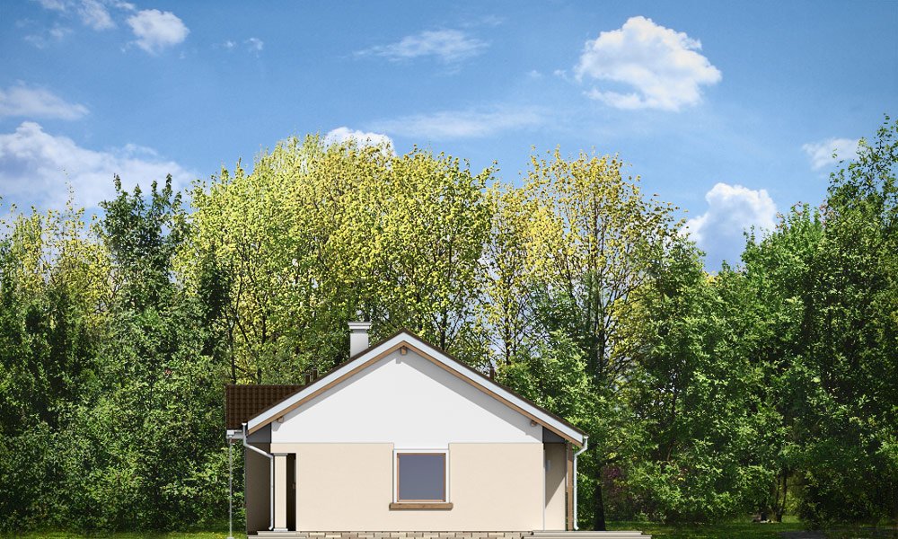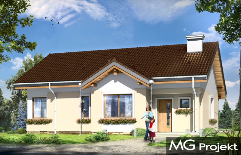 Cypisek 2 to powiększona wersja projektu Cypisek. Parterowy dom dla 4-osobowej rodziny, przekryty prostym, dwuspadowym dachem, z nieużytkowym strychem, który można zaadaptować na poddasze. Elewacja frontowa domu została urozmaicona narożnym podcieniem wejściowym, oraz zadaszonym wykuszem kuchni. Elewację ogrodową wzbogacają szerokie drzwi wyjściowe z salonu na taras, oraz podcień nad częścią tarasu. Cała bryła budynku - choć prosta, została ciekawie skomponowana. Tradycyjne dachy łączą się tutaj z nowoczesnym detalem i materiałami. Wnętrze parteru podzielono na część dzienną i nocną - z trzema sypialniami i łazienką. W części dziennej zaprojektowano salon z narożnym kominkiem i wygodną kuchnię z kącikiem jadalnym w wykuszu. Schodki z holu prowadzą na strych nieużytkowy, który można z łatwością można zaadaptować na dodatkowe poddasze. Dostępna jest także wersja projektu w odbiciu lustrzanym.