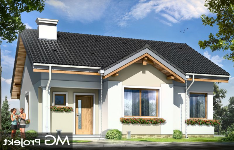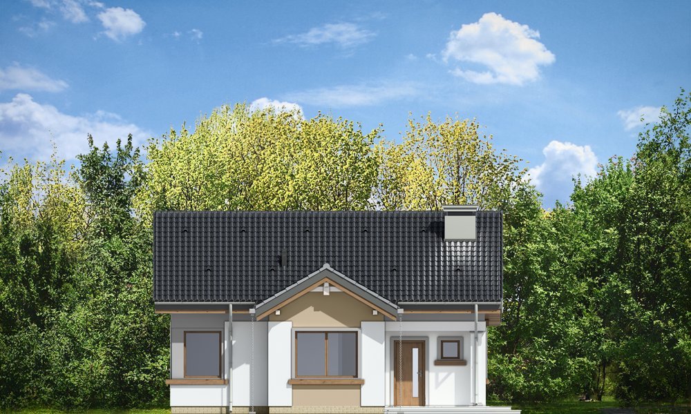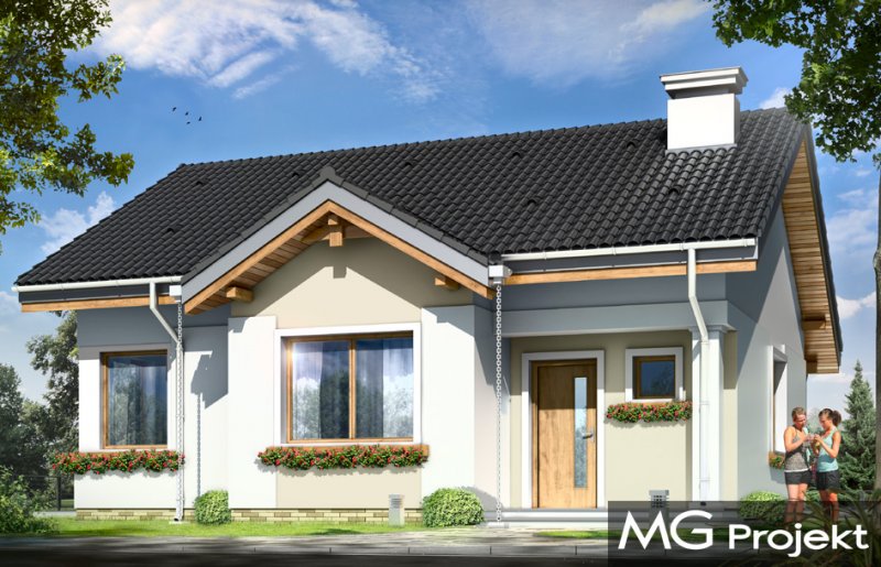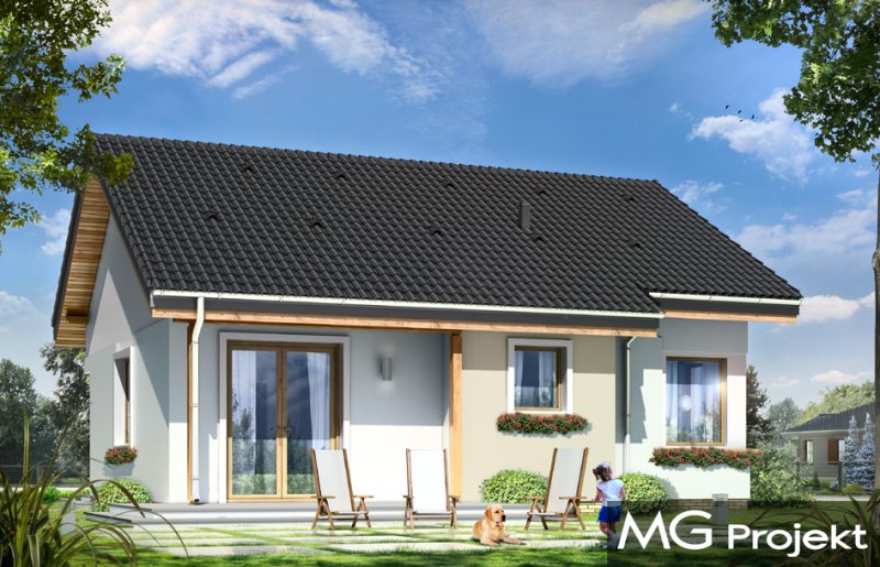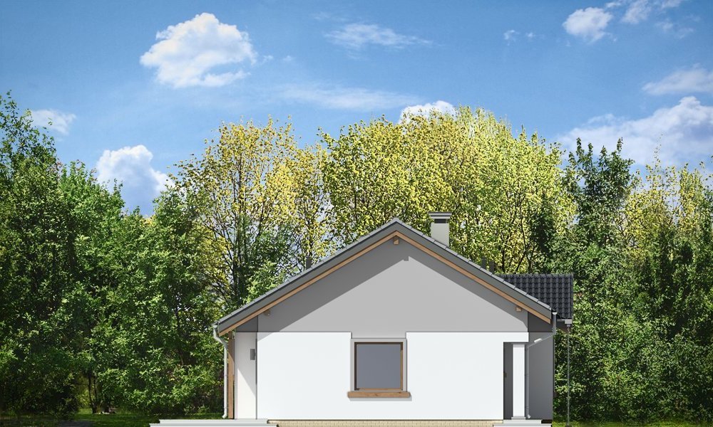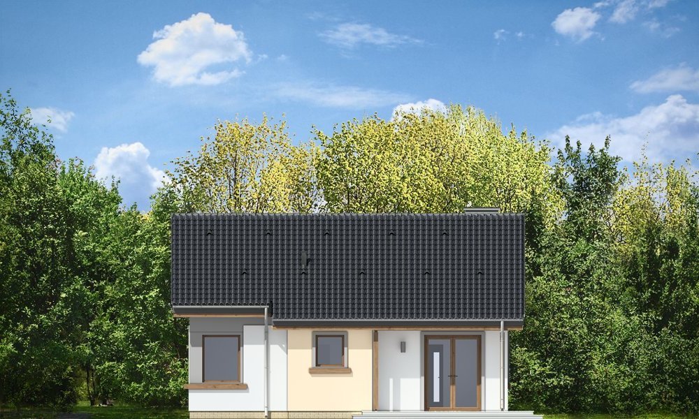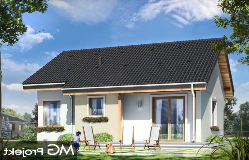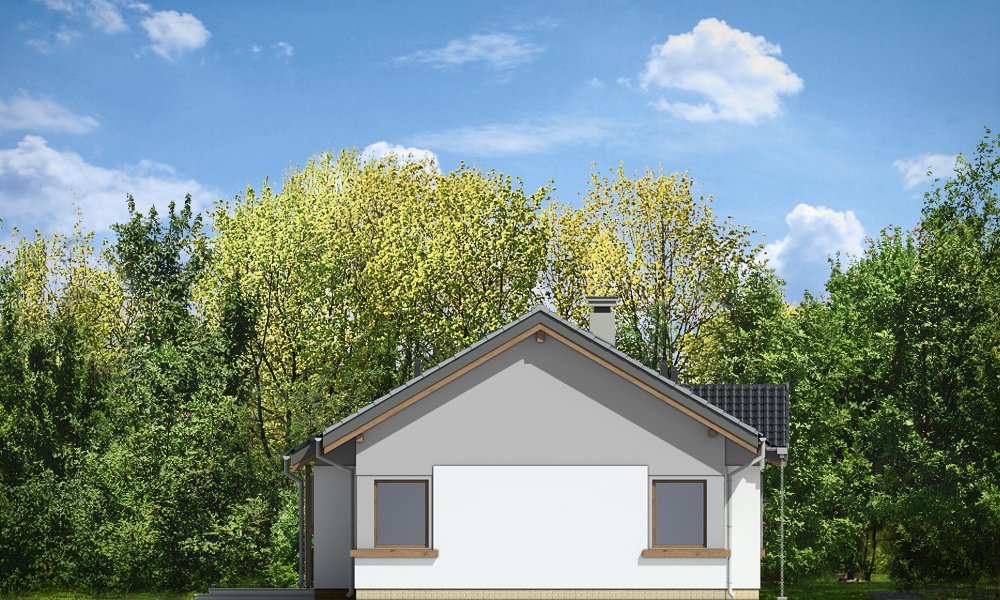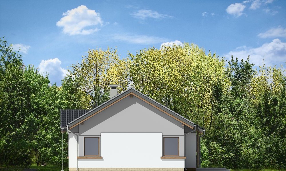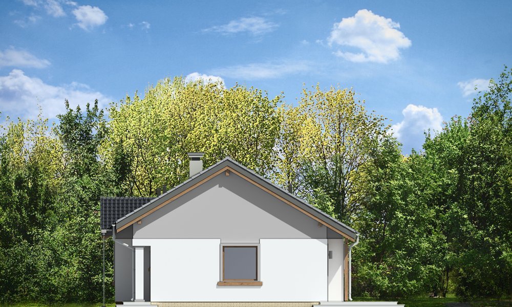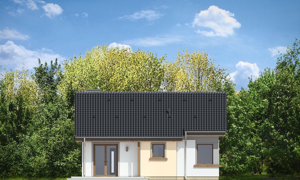 Cypisek to propozycja niewielkiego domku jednorodzinnego dla 3-4osobowej rodziny. Dom o prostokątnej bryle, przekrytej dwuspadowym, symetrycznym dachem. Prostą bryłę ozdobiono ciekawymi detalami, jak zadaszony wykusz kuchenny, narożny podcień wejściowy z kolumienką, narożne okna sypialni, czy podcień ogrodowy nad tarasem. Dobrane ze smakiem, nowoczesne materiały i kolorystyka w połączeniu z tradycyjną bryłą dają niepowtarzalny efekt. Wnętrze domku to trzypokojowe, wygodne mieszkanie, z dodatkowym przedsionkiem wejściowym i kotłownią. Salon wzbogacono o narożny kominek widoczny z każdego miejsca części dziennej i szerokie przeszklone drzwi otwierające dom na taras i ogród. Nieużytkowy strych nad parterem można dość łatwo zaadaptować na dodatkowe poddasze. Pracownia posiada także projekt w odbiciu lustrzanym.