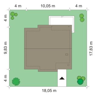 - Min. wymiary działki 18.05x17.83 m