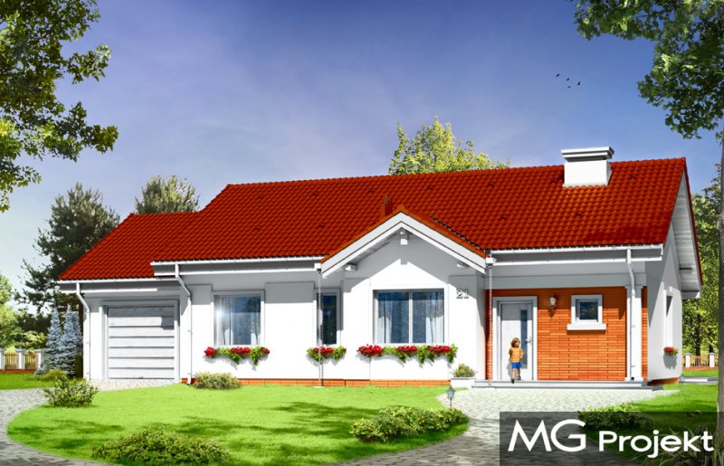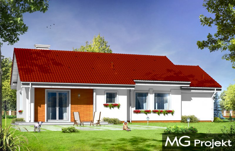 Cypisek 4 to kolejna wersja popularnego projektu Cypisek. Parterowy dom dla 4-osobowej rodziny, przekryty prostym dwuspadowym dachem, z nieużytkowym strychem, który można zaadaptować na poddasze. Elewacja frontowa została ładnie urozmaicona narożnym wejściem, oraz zadaszonym wykuszem kuchni. Elewację ogrodową wzbogacają szerokie drzwi wyjściowe z salonu na taras, oraz podcień nad częścią tarasu. Cała bryła domu - choć prosta, została ciekawie skomponowana. Tradycyjne dachy łączą się tutaj z nowoczesnym detalem i materiałami. Wnętrze parteru podzielono na część dzienną i nocną - z trzema sypialniami i łazienką. W części dziennej zaprojektowano salon z narożnym kominkiem i wygodną kuchnię z kącikiem jadalnym w wykuszu. W wygodnej kotłowni znajdzie się miejsce na kocioł gazowy, ale również zamiennie na kocioł na paliwo stałe. Schodki z holu prowadzą na strych nieużytkowy, który można dość łatwo zaadaptować na dodatkowe poddasze. Pracownia posiada wersję projektu w odbiciu lustrzanym.