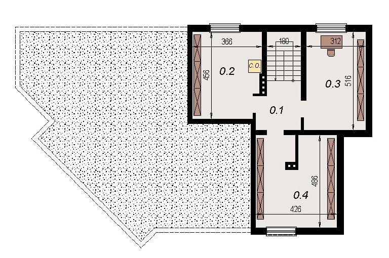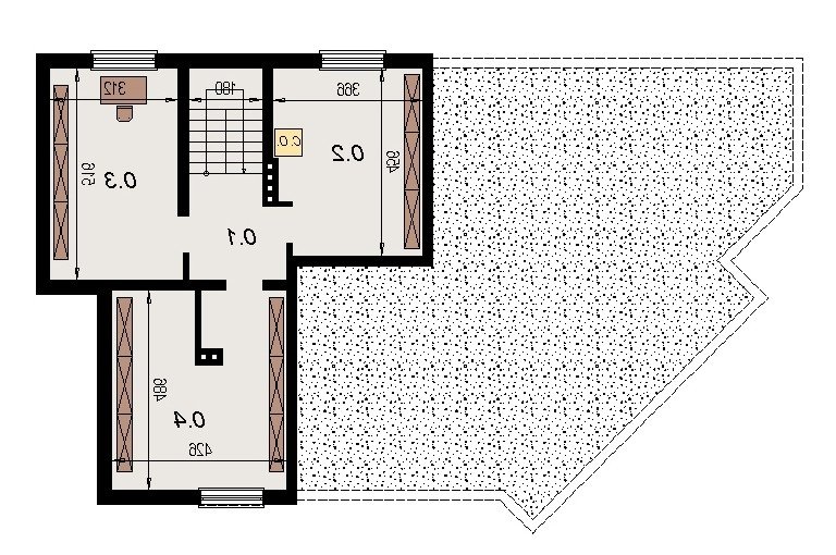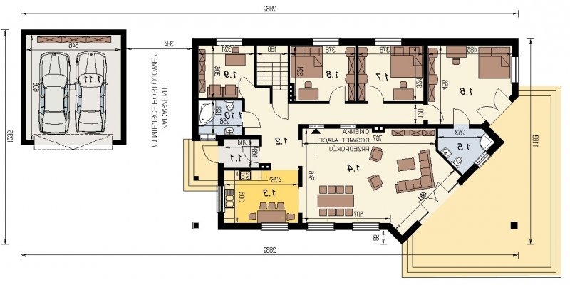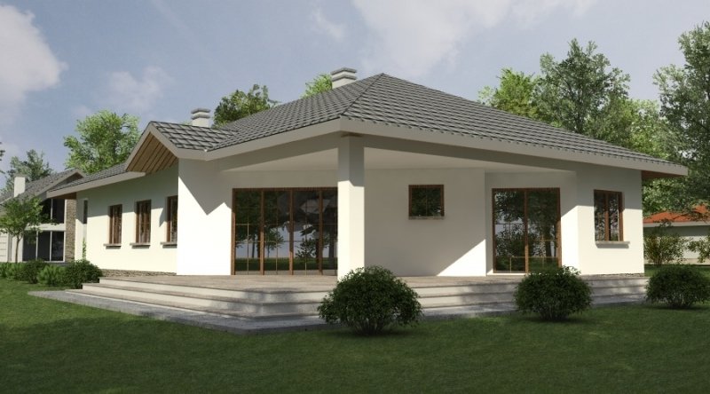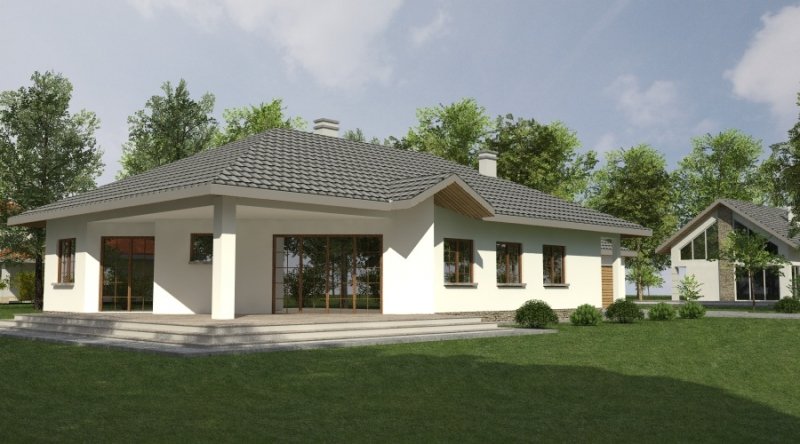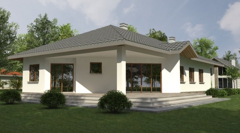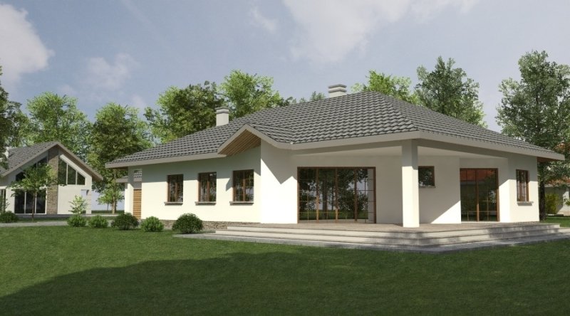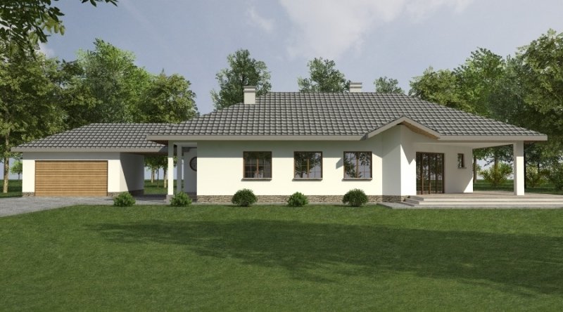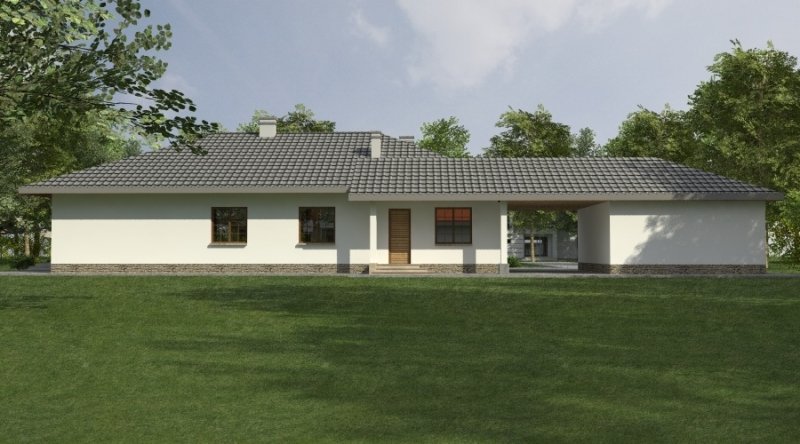 Dom parterowy został opracowany na nietypową działkę na zlecenie indywidualne. Cechą wyróżniającą ten dom spośród innych jest ścięty narożnik części domu od strony salonu, który powoduje że dom pasuje do nietypowej lokalizacji. Garaż 2 stanowiskowy można wykonać w 2 etapie inwestycji lub zrezygnować z niego. Wnętrze domu zostało podzielone na strefę dzienną i nocną. W strefie dziennej znajduje się duży salon o powierzchni ponad 43m2. W strefie nocnej znajdują się 3 sypialnie w tym jedna 2-osobowa z własną łazienką. . Dostępna jest wersja projektu z częściowym podpiwniczeniem. Projekt Dj 1. Projekty podobne ( ze ściętym salonem ): DJ 6, DJ 7, DJ 8, DJ 176.