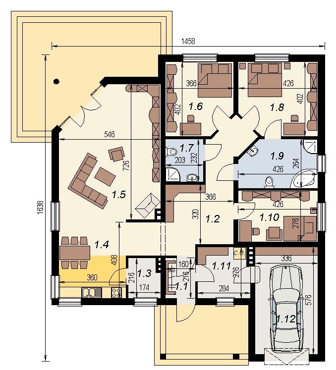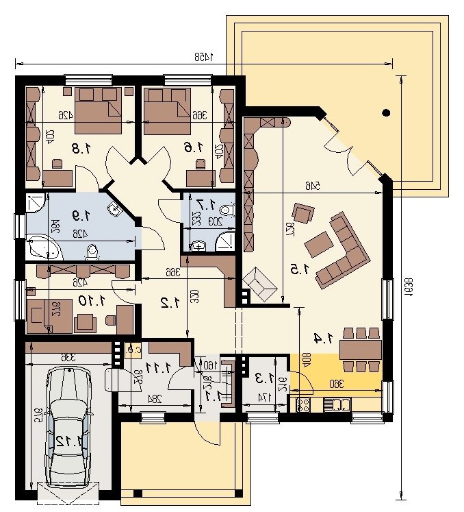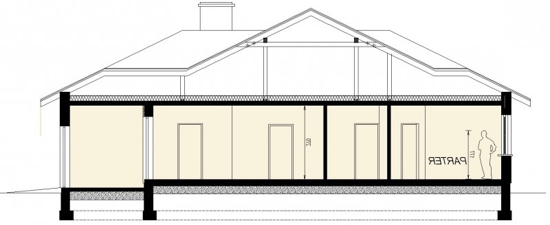Projekt w tej wersji posiada instalację wentylacji z odzyskiem ciepła oraz zmodyfikowane grubości izolacji fundamentów, podłóg, ścian, stropów i dachu.