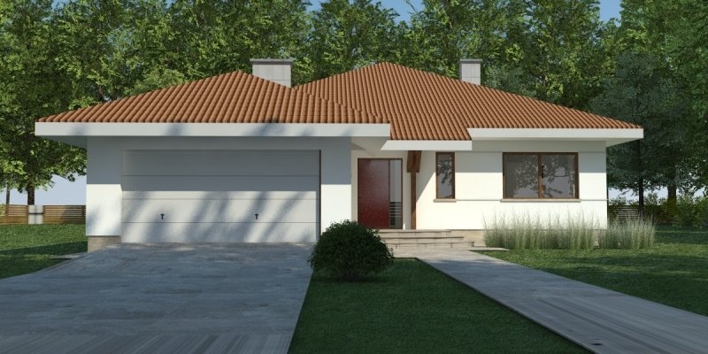 dom posiada zintegrowany garaż na 2 samochody osobowe.