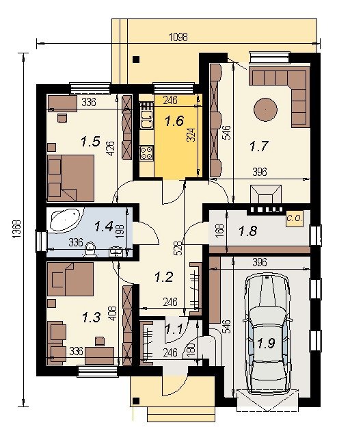 projekt w tej wersji posiada instalację wentylacji z odzyskiem ciepła oraz zmodyfikowane grubości izolacji fundamentów,podłóg,ścian, stropów i dachu.