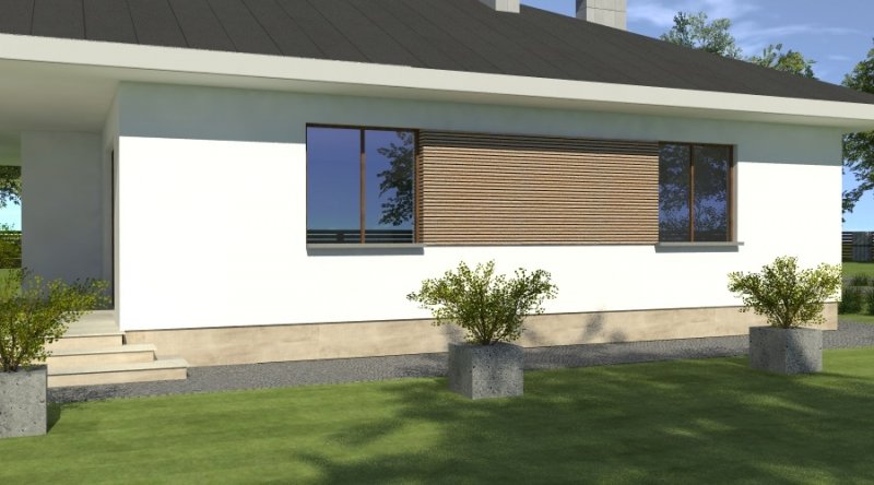 Projekt w tej wersji posiada instalację wentylacji z odzyskiem ciepła oraz zmodyfikowane grubości izolacji fundamentów, podłóg, ścian, stropów i dachu.