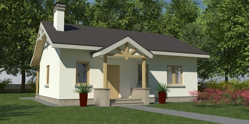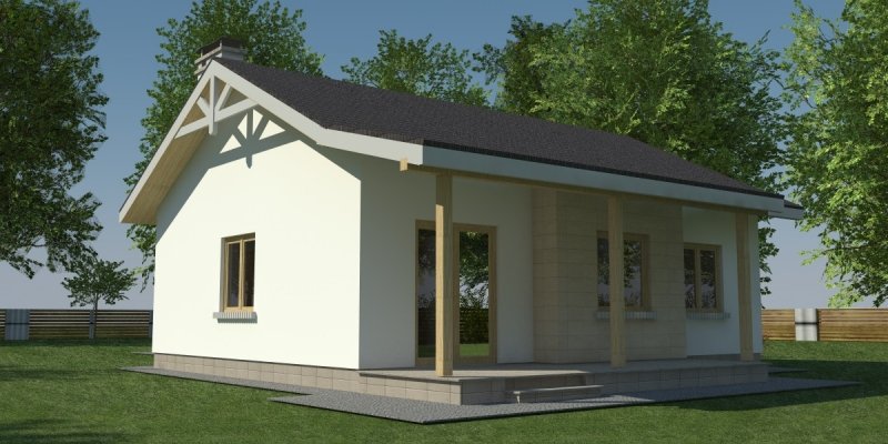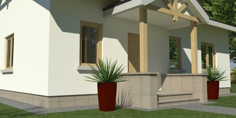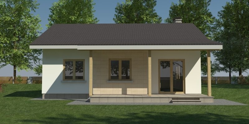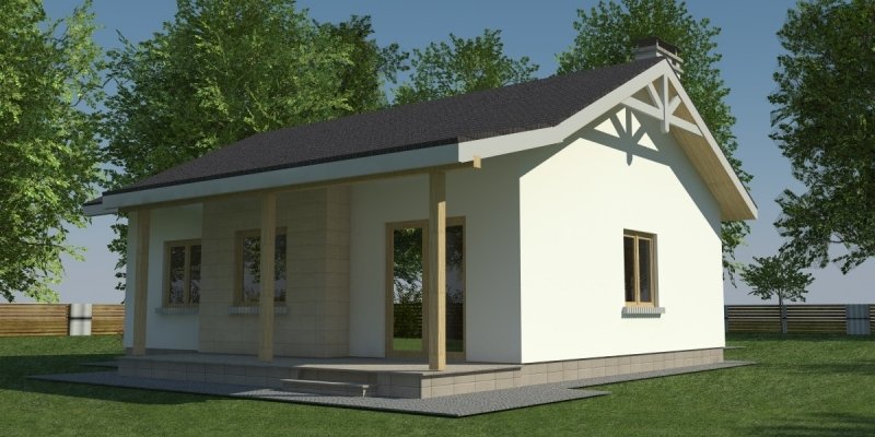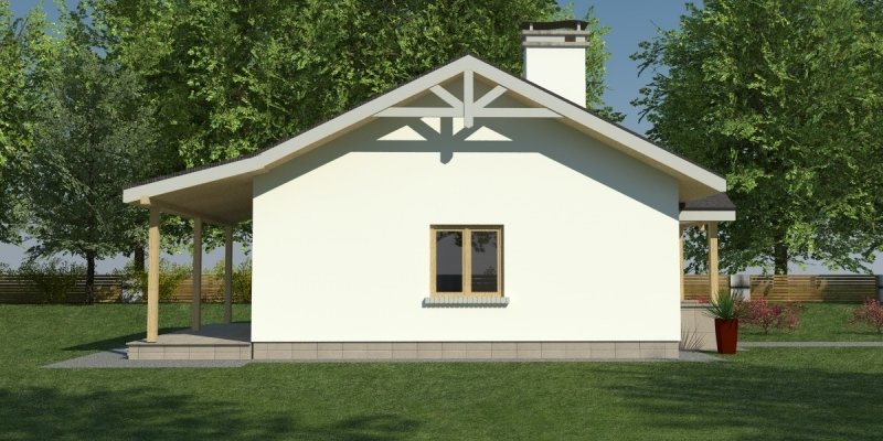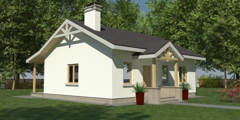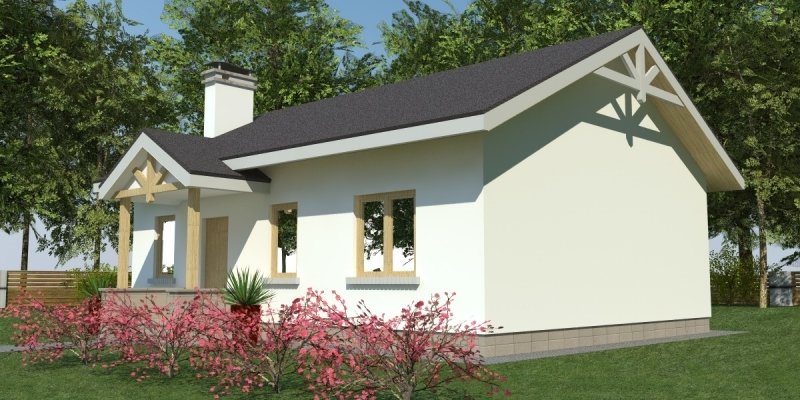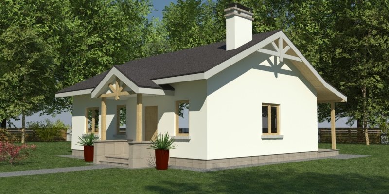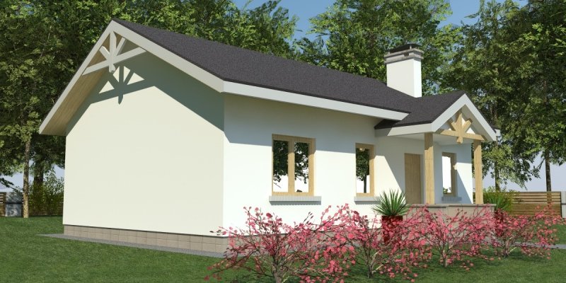 Dom parterowy o pow. 81.8 m2, będący alternatywą dla 3 pokojowego mieszkania. Dom zaprojektowano w sposób bardzo ekonomiczny i funkcjonalny, a jego realizacja jest przewidziana systemem całkowicie gospodarczym lub pół-gospodarczym. Ujmując ściślej - jest to dom do samodzielnego wybudowania przez przyszłych domowników, nie zawiera elementów trudnych do wykonania oraz kosztochłonnych.