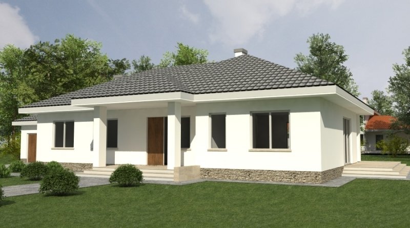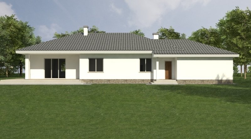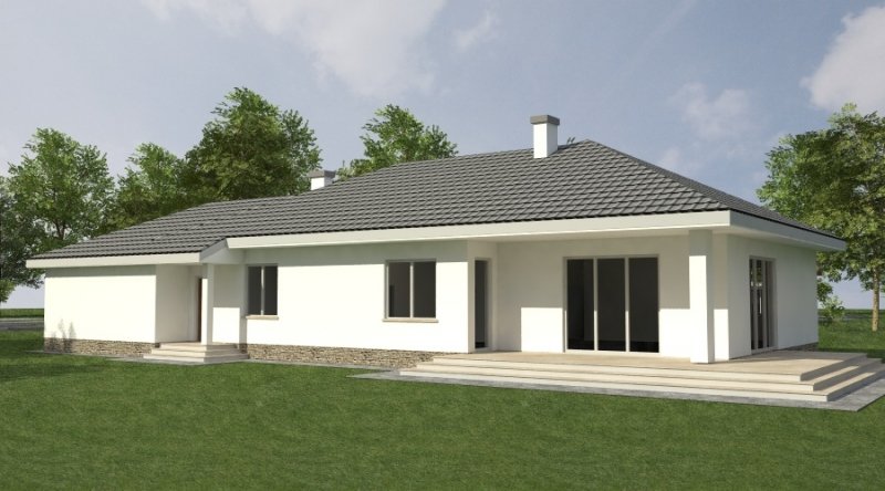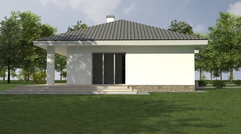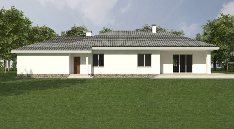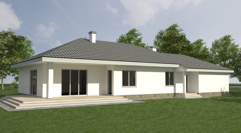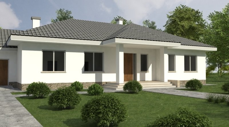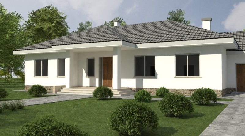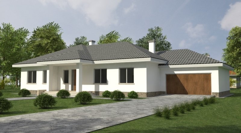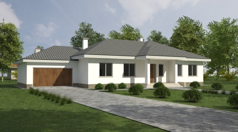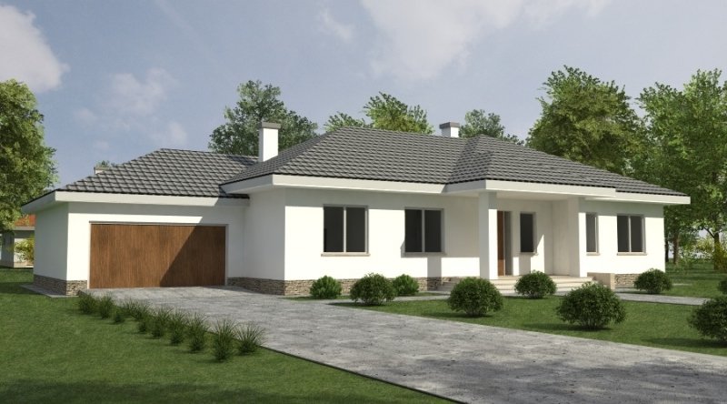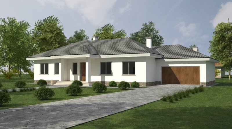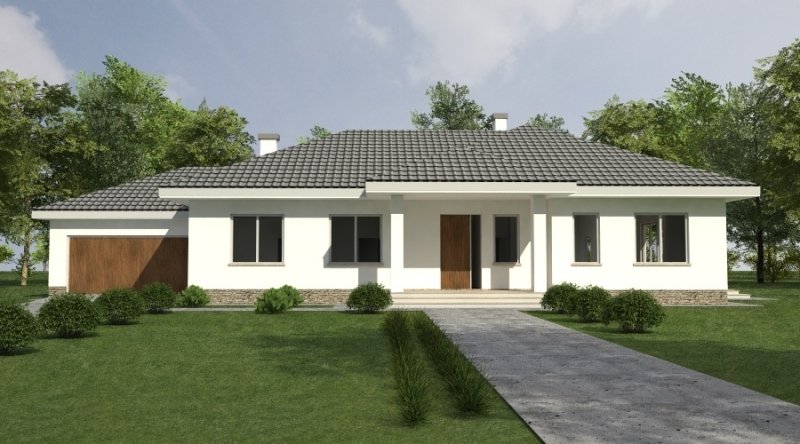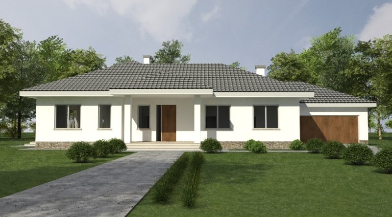 Dom parterowy z bezbłędnie opracowanym układem funkcjonalnym. Zaprojektowany w stylu tradycyjnym. Do bryły budynku został dostawiony obszerny garaż na dwa samochody osobowe. Możliwe jest opracowanie wersji projektu bez garażu lub z garażem jednostanowiskowym.
