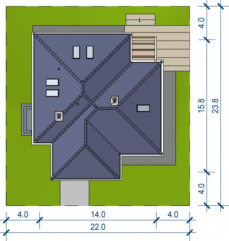 - dach o konstrukcji drewnianej z pokryciem z dachówki ceramicznej, cementowej lub blachodachówki