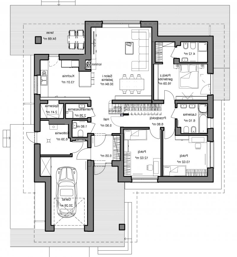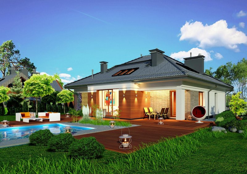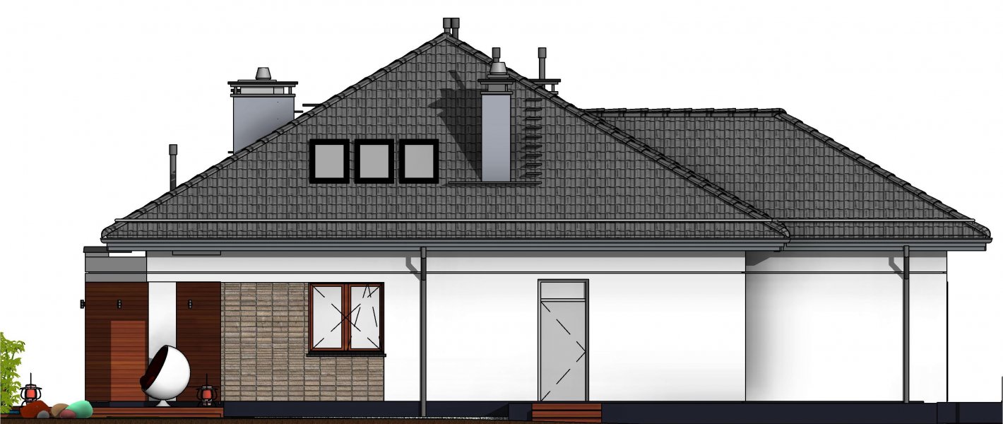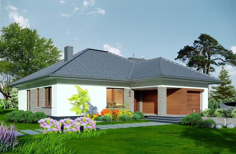 To rozłożysty parterowy, bardzo komfortowy dom o niezbyt wielkim metrażu.