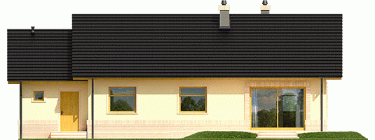 Dom zaprojektowany w technologii murowej ze stropem gęstożebrowym. Dach o konstrukcji drewnianej pokryty dachówką płaską lub inną o podobnych parametrach. Więźba dachowa dostępna również w systemie prefabrykacji drewnianej. Elewacje wykończono tynkiem mineralnym w kolorze TO-YE028 z palety firmy Termo Organika, okładziną klinkierową. Cokół klinkierowy. Stolarka okienna drewniana lub PVC.