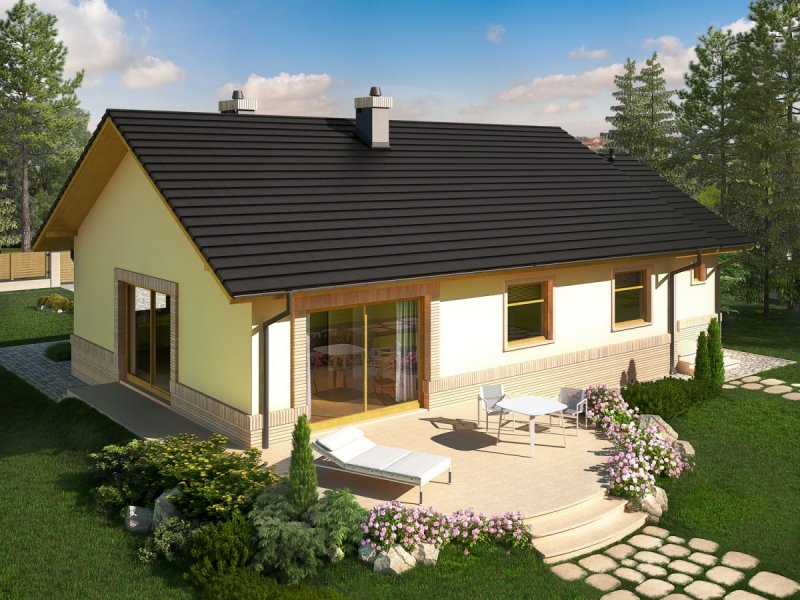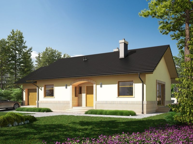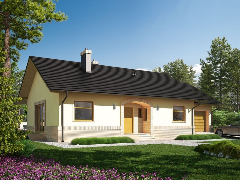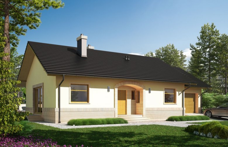 Dom parterowy, niepodpiwniczony z garażem jednostanowiskowym, przeznaczony dla 3-4-osobowej rodziny. Strefę dzienną tworzy salon z kominkiem, kuchnia oraz obszerna jadalnia. Dodatkowo dom posiada praktyczne pomieszczenie gospodarcze oraz dodatkową toaletę. Strefa nocna to dwie sypialnie, komfortowa sypialnia rodziców oraz duża łazienka. Erin III G1 to propozycja dla inwestorów, którzy cenią klasyczne piękno, symetryczne połączenia oraz słoneczne wnętrza. Dopracowany układ funkcjonalny domu harmonijnie koresponduje z pełnym wdzięku wyglądem zewnętrznym. Symetrię budynku podkreślają dwa zewnętrzne okna oraz lampy, oświetlające strefę wejściową, która została zaakcentowana zgrabnym łukiem. Całość dopełnia ciepła, przyjazna kolorystyka elewacji. Erin III G1 to dom ekonomiczny w realizacji i późniejszej eksploatacji, który doskonale wpisze się w każdy krajobraz. Istnieje możliwość: - podpiwniczenia budynku - zbliźniaczenia - wykonania domu dwulokalowego