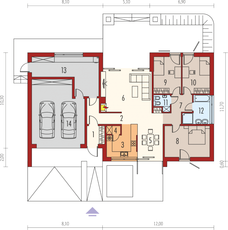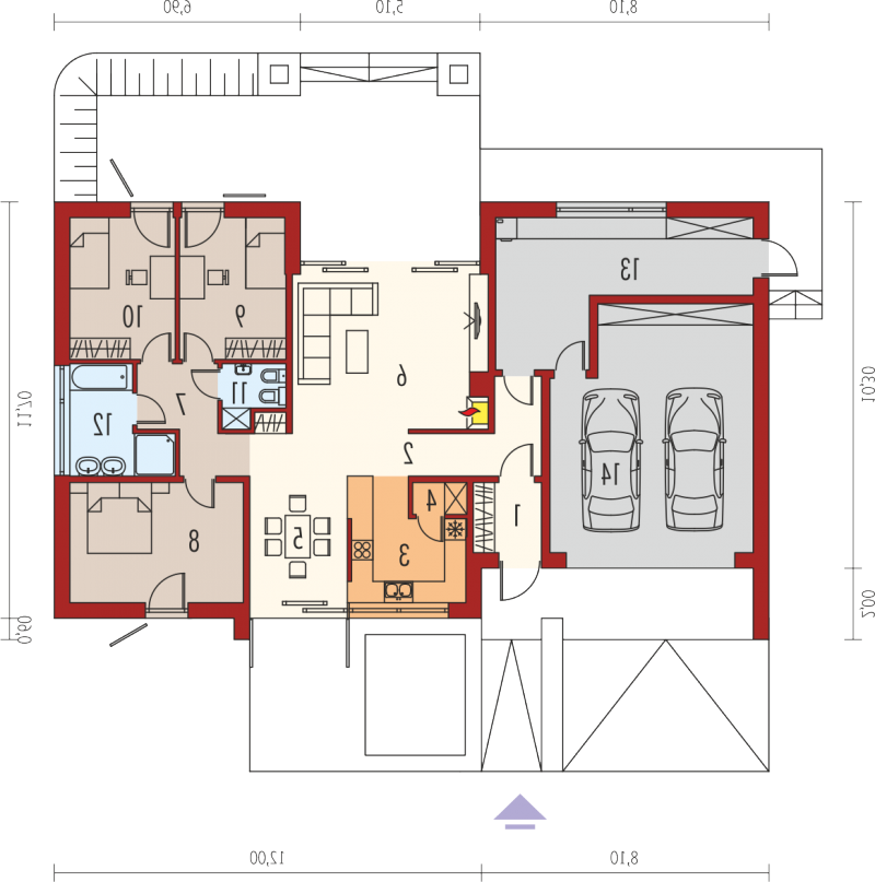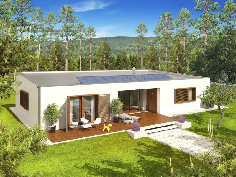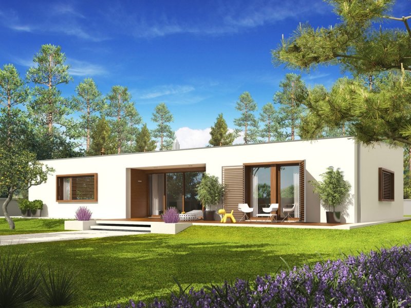 Dom zaprojektowany w technologii murowej z dachem w postaci stropodachu odwróconego.