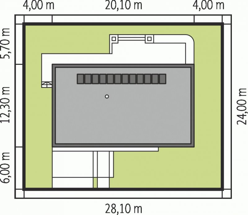 - Min. wymiary działki 28.10x24.00 m