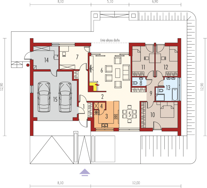 - Kąt nachylenia dachu 25.00°