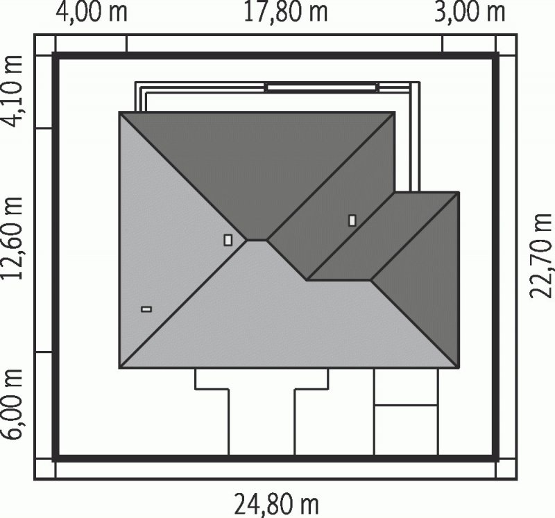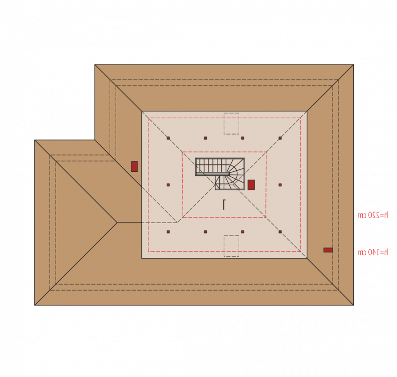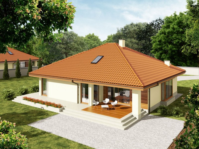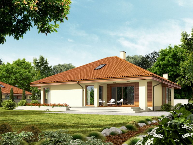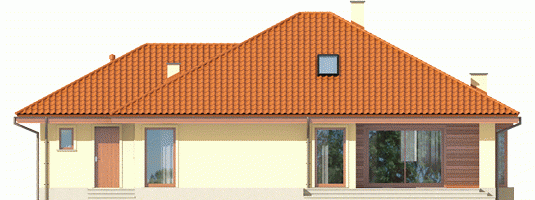 Dach: konstrukcja drewniana, ocieplenie wełna mineralna 30 cm, dachówka ceramiczna lub cementowa, więźba dachowa dostępna również w systemie prefabrykacji drewnianej