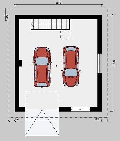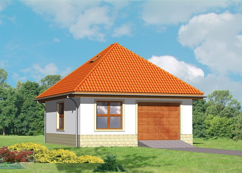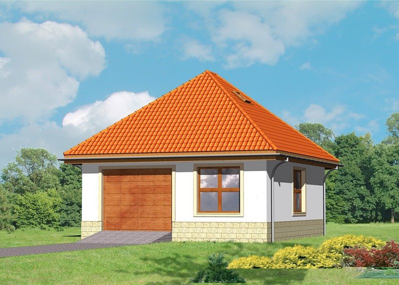 Wolnostojący, podpiwniczony garaż wolnostojący, mieszczący dwa samochody.