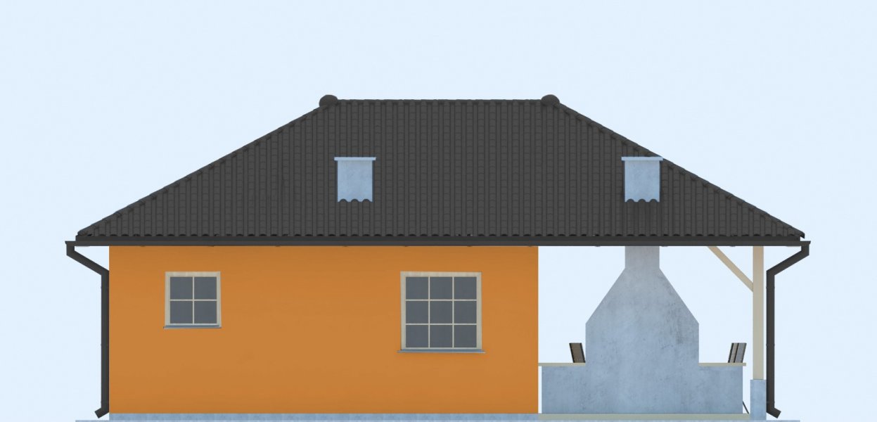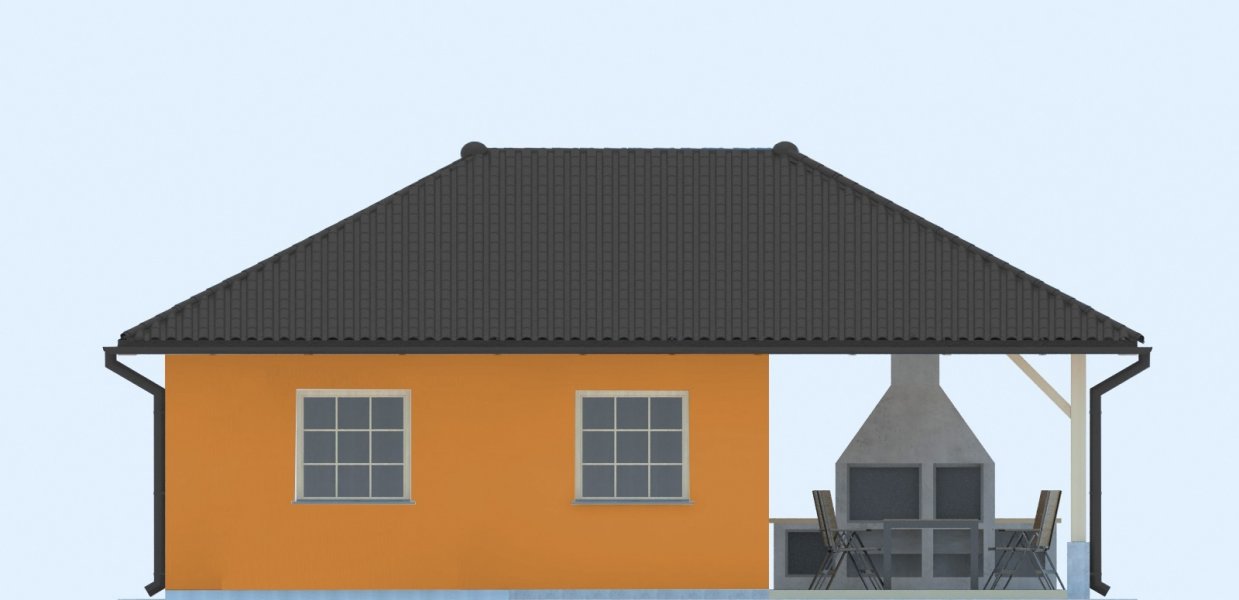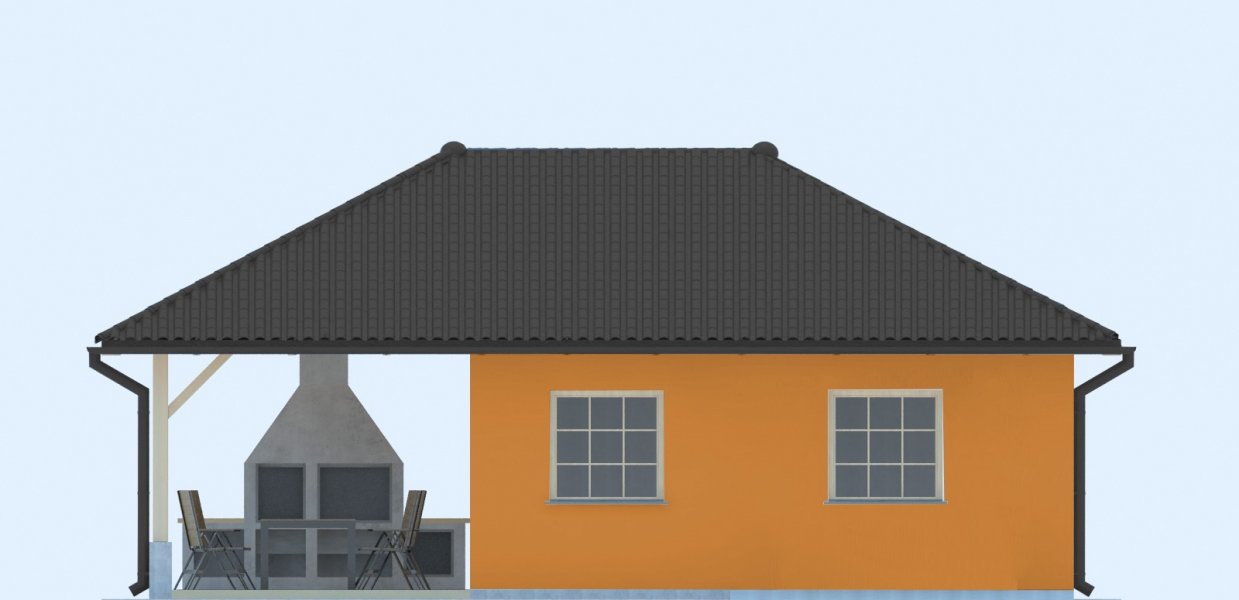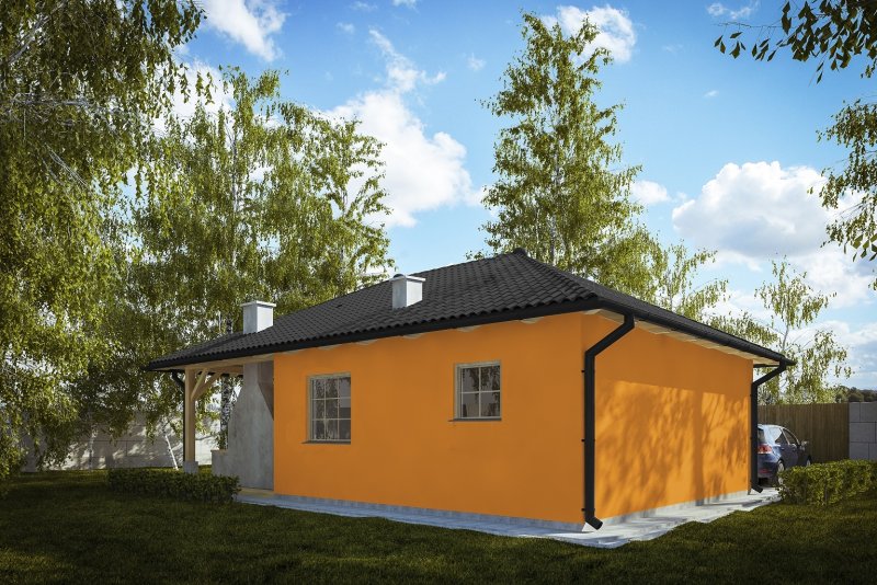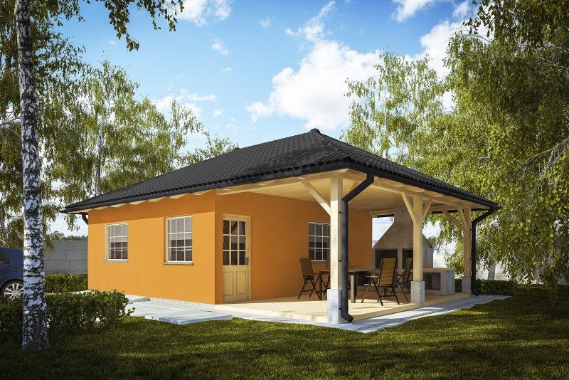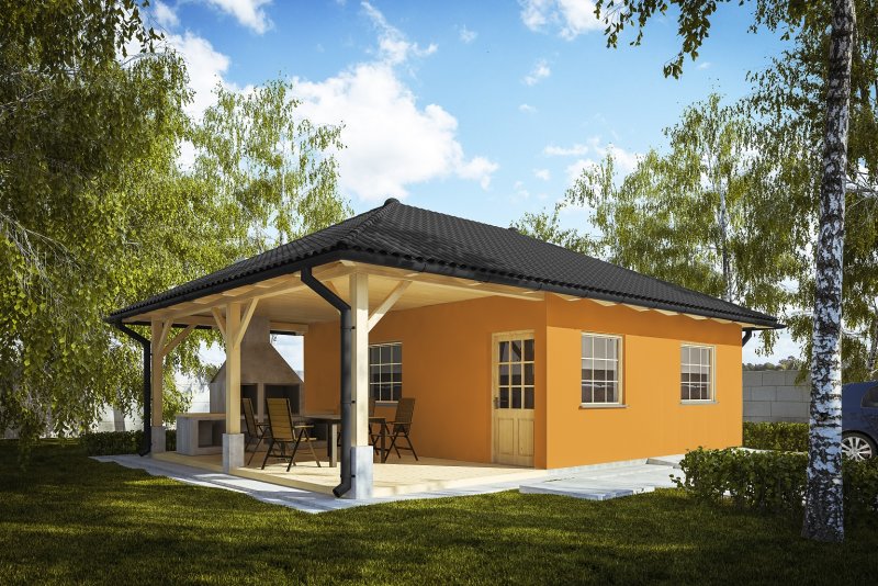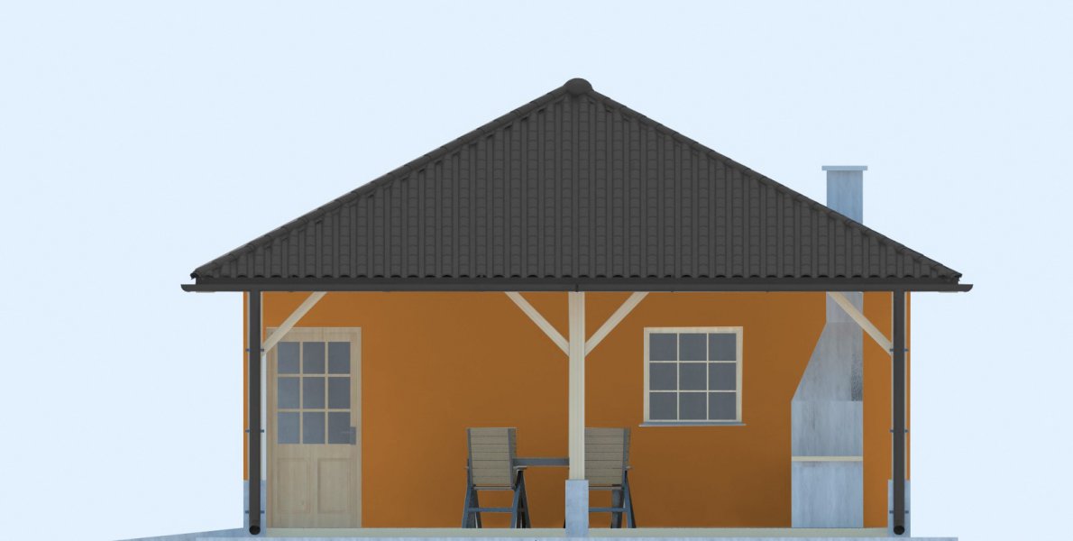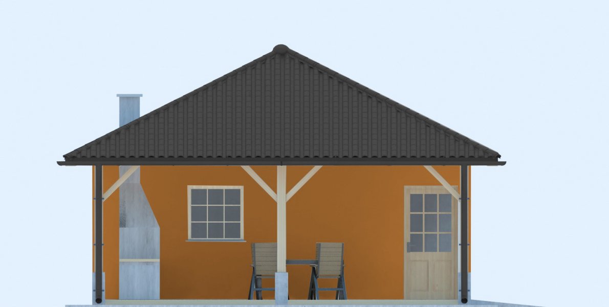 Projekt budynku letniskowego, parterowego, niepodpiwniczonego, z pokojem wypoczynkowym, aneksem kuchennym, pokojem sypialnym, łazienką i altaną. Do projektu dołączone jest zestawienie: stali, więźby dachowej oraz stolarki drzwiowej, jak również bezpłatna zgoda na dokonanie zmian.