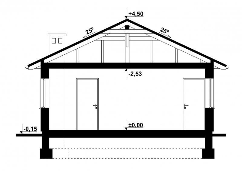 - Kąt nachylenia dachu 25.00°