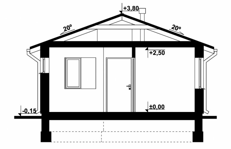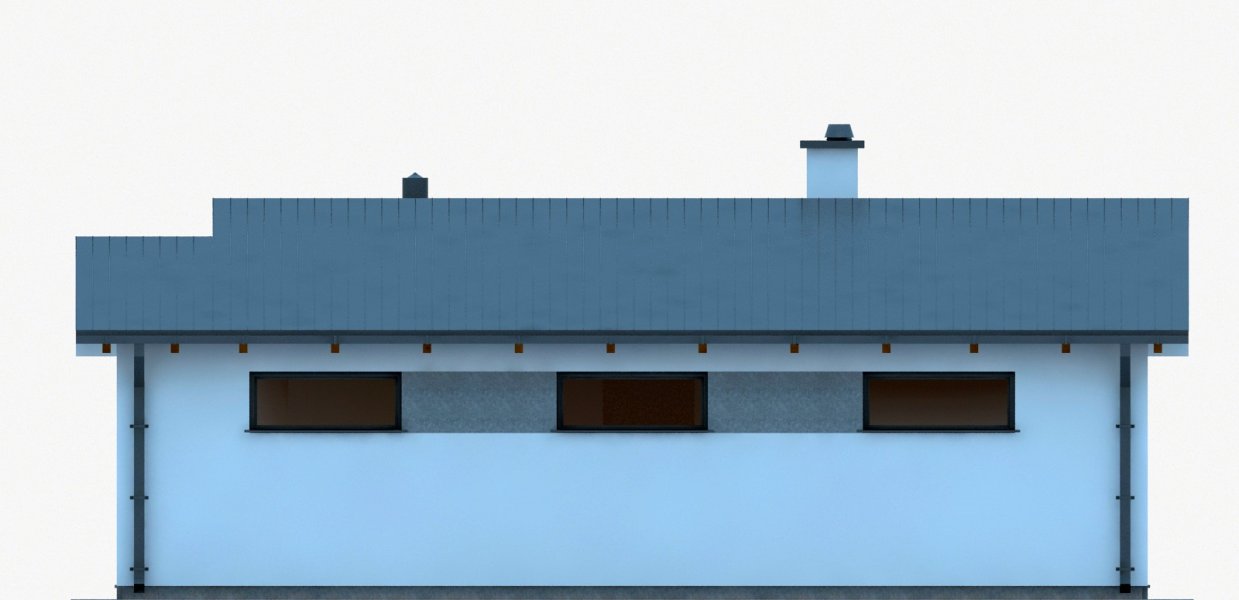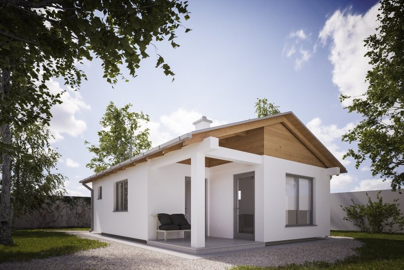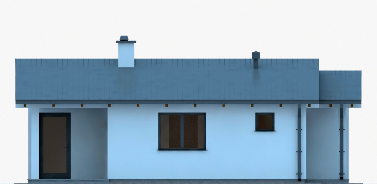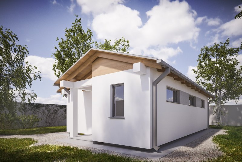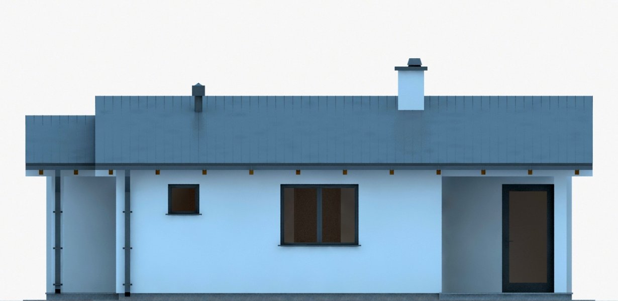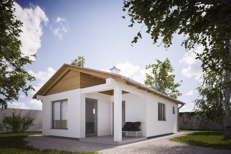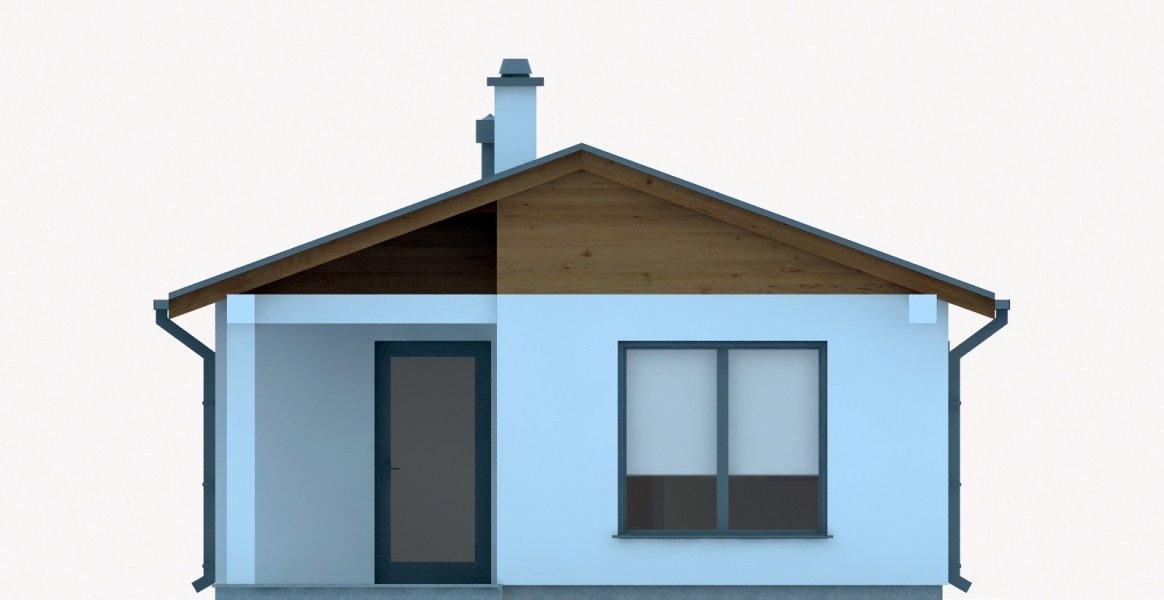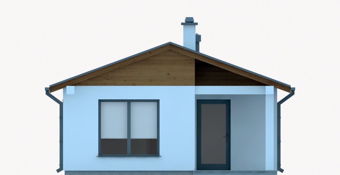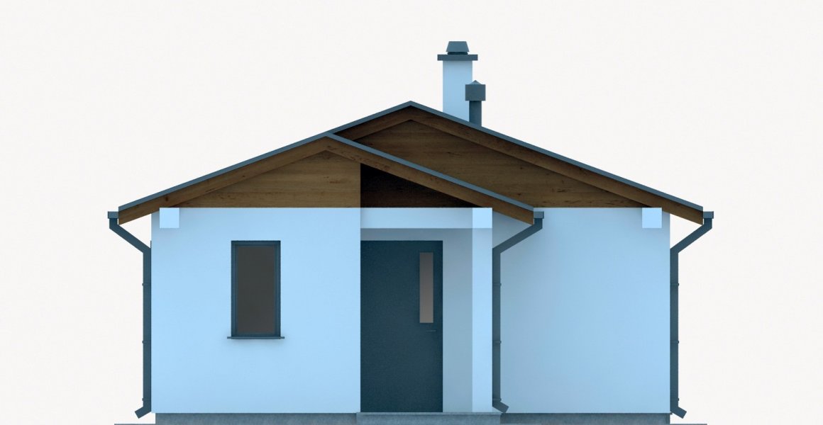 Projekt budynku letniskowego, parterowego, niepodpiwniczonego, z pokojem wypoczynkowym, aneksem kuchennym, pokojem sypialnym i łazienką. Do projektu dołączone jest zestawienie: stali, więźby dachowej oraz stolarki drzwiowej, jak również bezpłatna zgoda na dokonanie zmian.