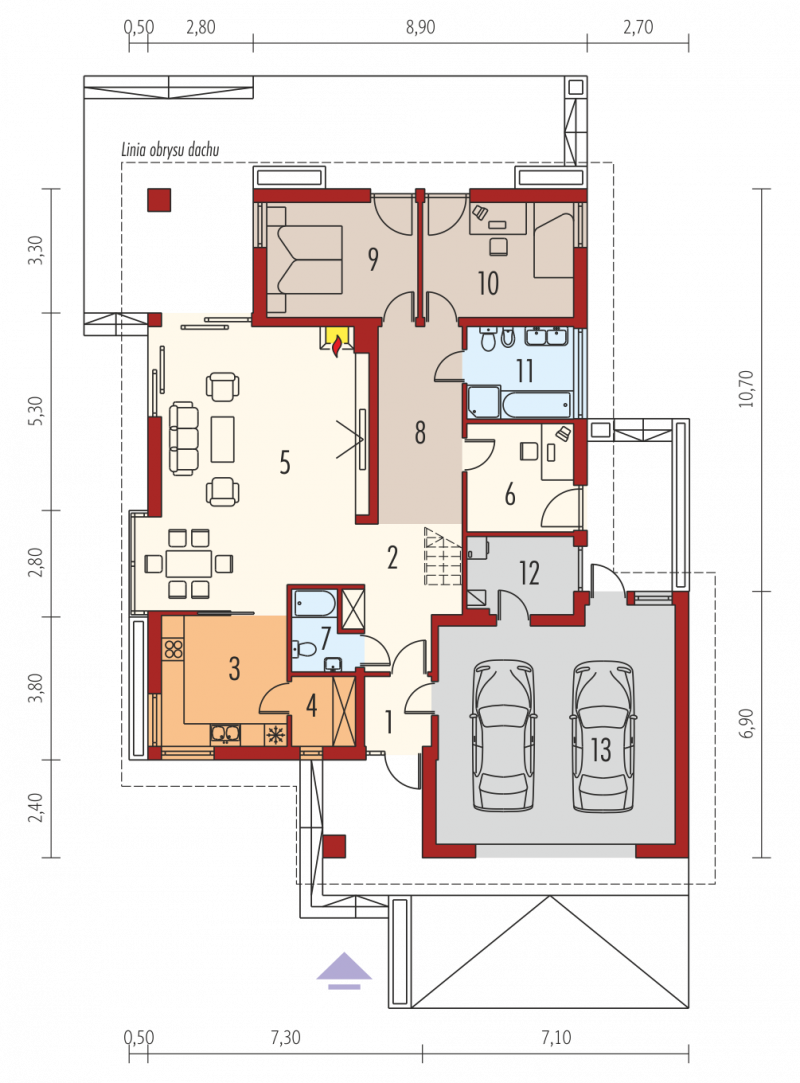 - Min. wymiary działki 21.90x25.60 m