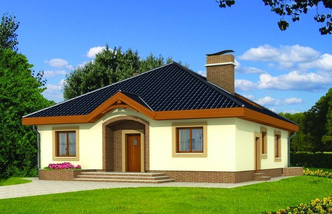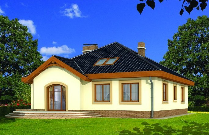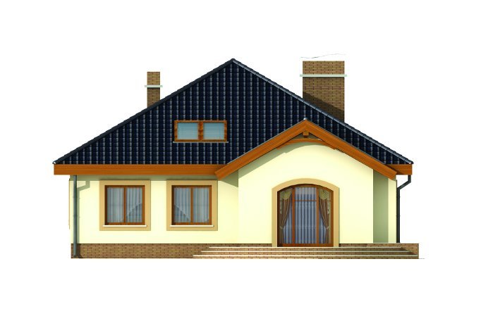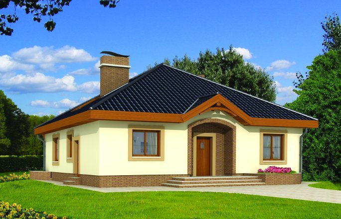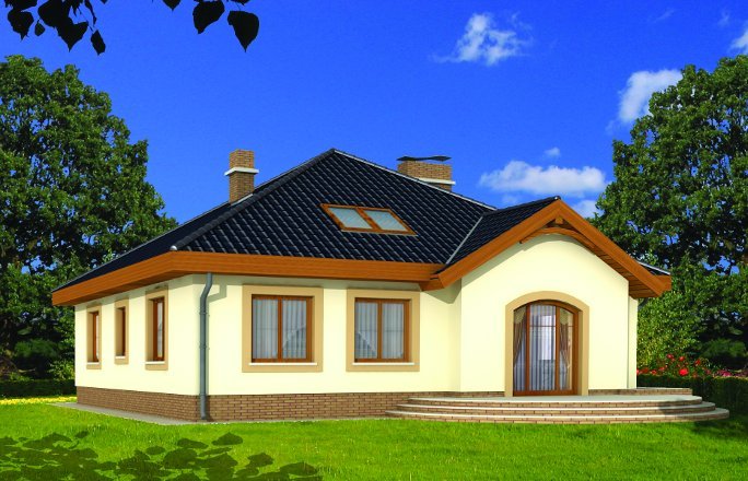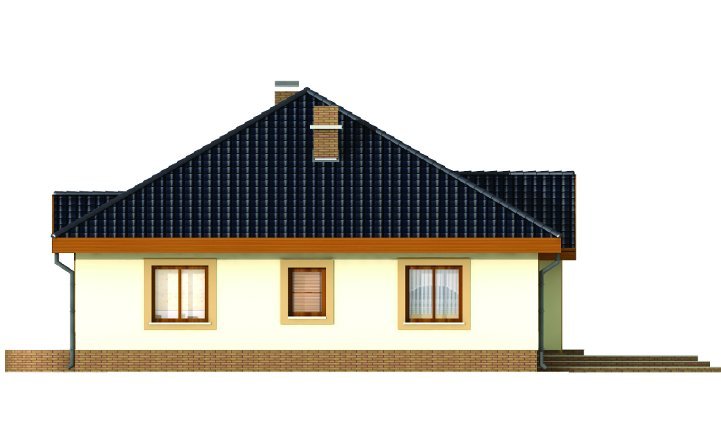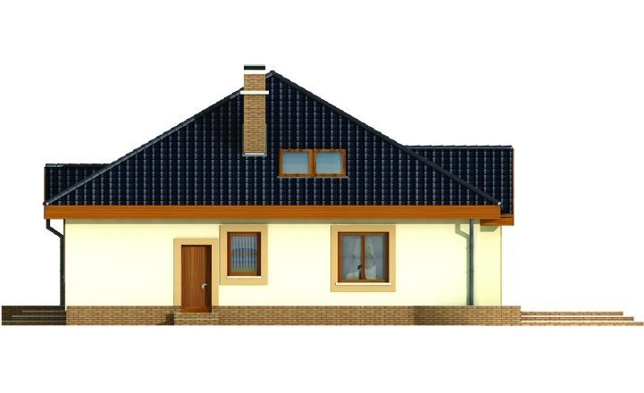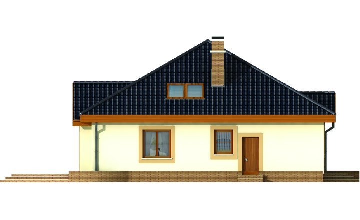 Wygodny parterowy domek z funkcjonalnym i rozkładowym układem pomieszczeń. Trzy sypialnie i łazienka stanowią strefę nocną, natomiast do strefy dziennej należy przestronna kuchnia i piękny salon z kominkiem, którego ciepło może być wykorzystane do ogrzania całego domu. Duża kotłownia daje możliwość zastosowania różnego rodzaju opału. Kolejną zaletą tego domu jest to, że możemy powiększyć jego powierzchnię adaptując poddasze.