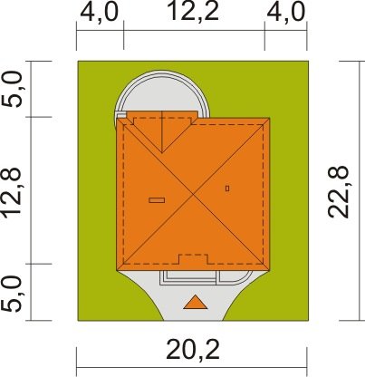 - Min. wymiary działki 22.80x20.20 m
