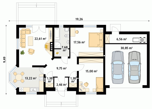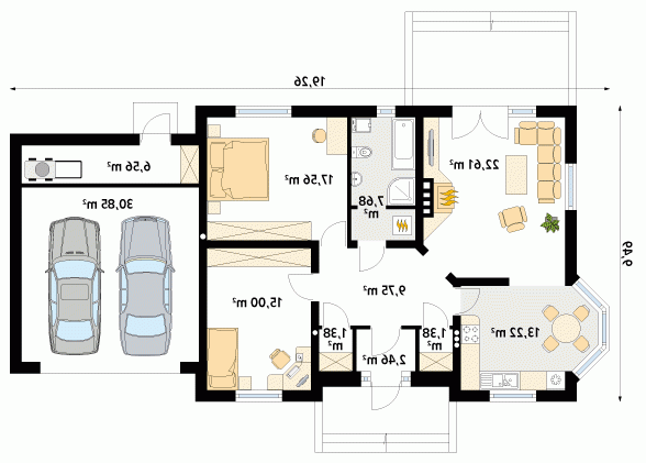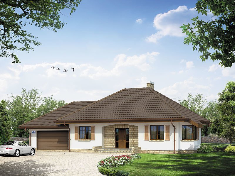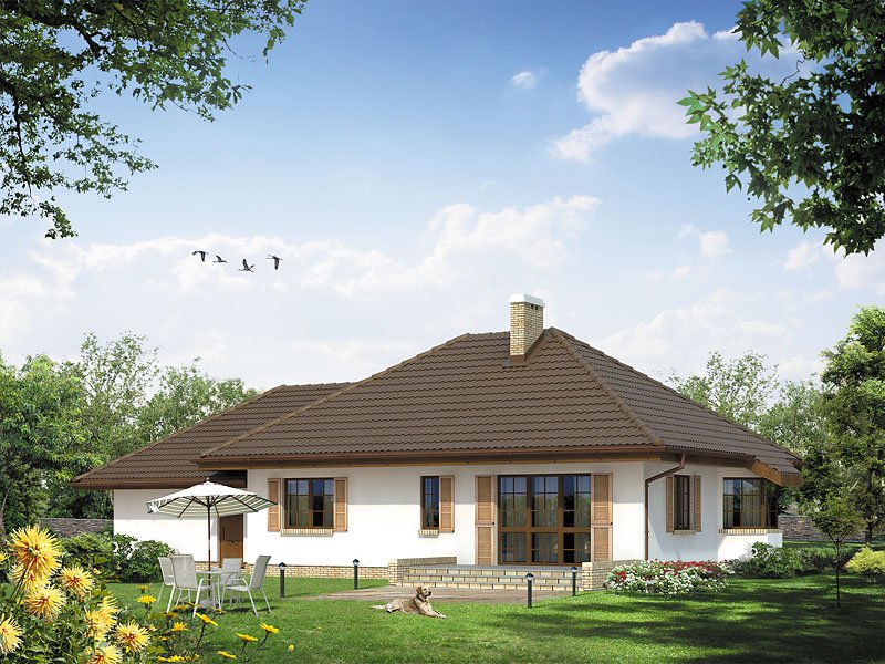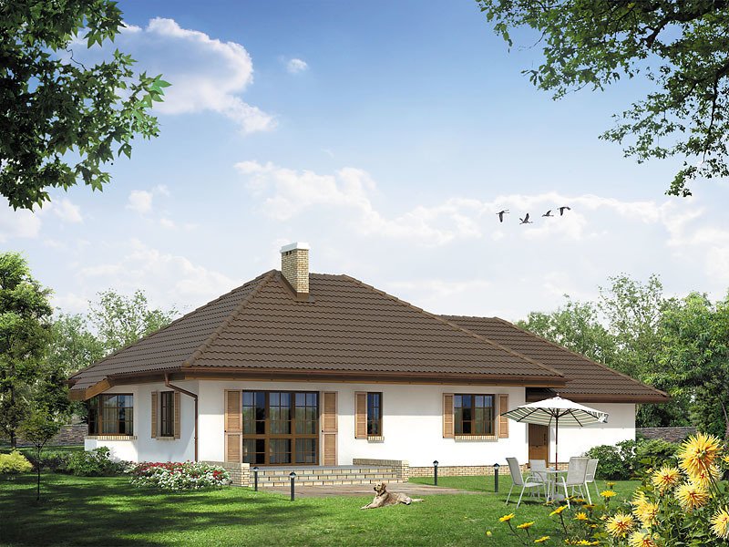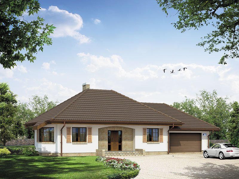 Parterowy dom jednorodzinny, niepodpiwniczony z garażem dwustanowiskowym. Funkcjonalny dom zaspokajający potrzeby 3-osobowej rodziny. Prosty w budowie i ekonomiczny w utrzymaniu dzięki prostej, zwartej bryle.