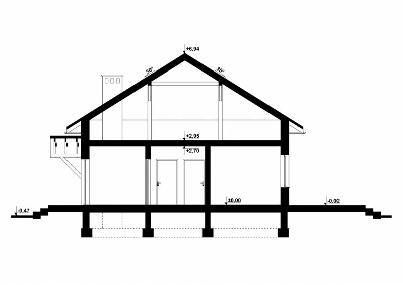 Budynek wykonany w technologii tradycyjnej. Ściany warstwowe grubości 38cm, murowane z bloczków z betonu komórkowego grubości 24cm, ocieplone styropianem grubości 14cm. Ściany wewnętrzne z bloczków z betonu komórkowego grubości 24cm i 12cm. Komin z cegły ceramicznej pełnej. Strop gęstożebrowy „TERIVA”. Więźba dachowa wielospadowa, drewniana, pokryta dachówką ceramiczną.