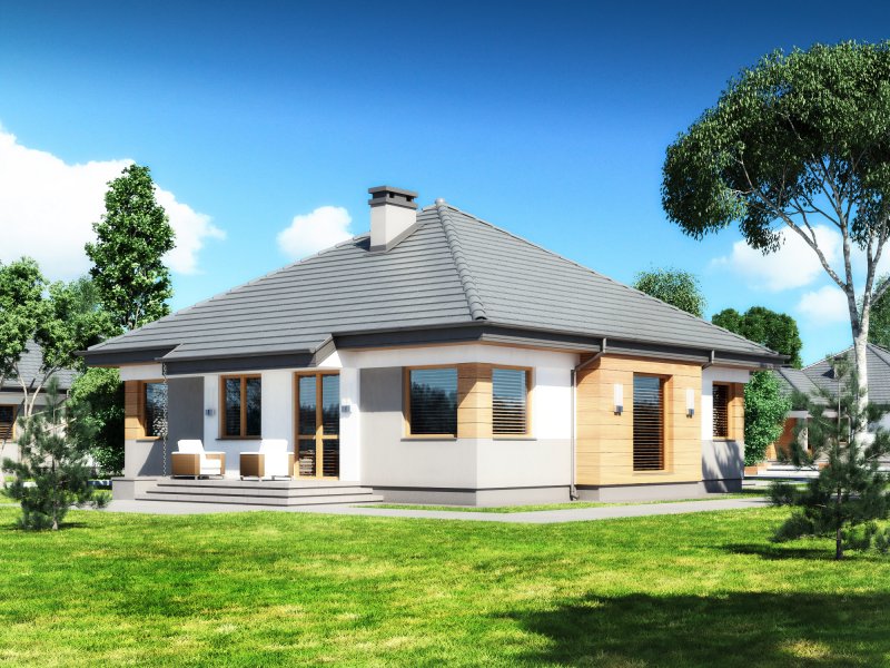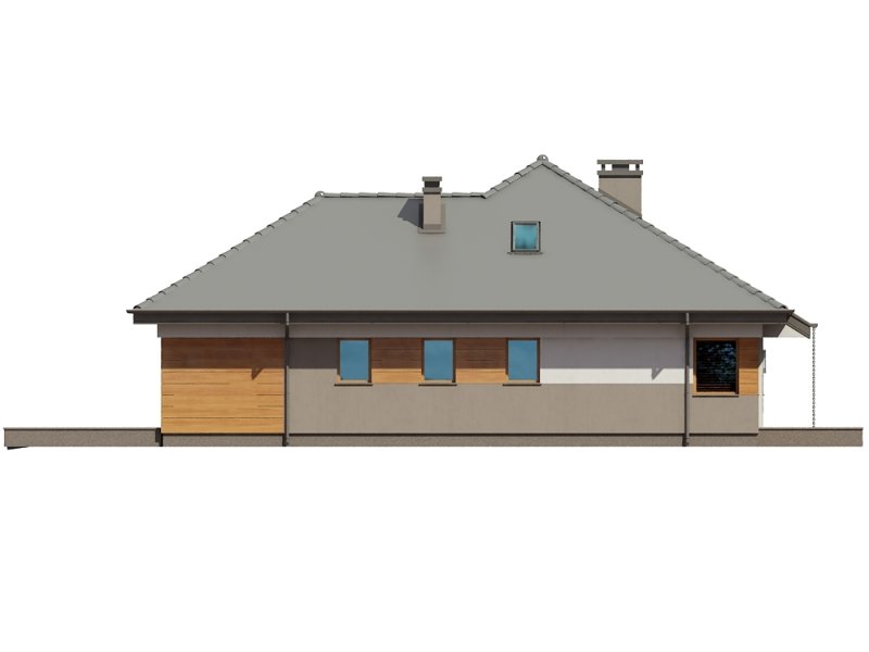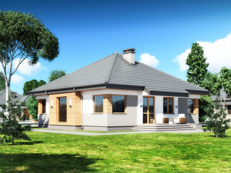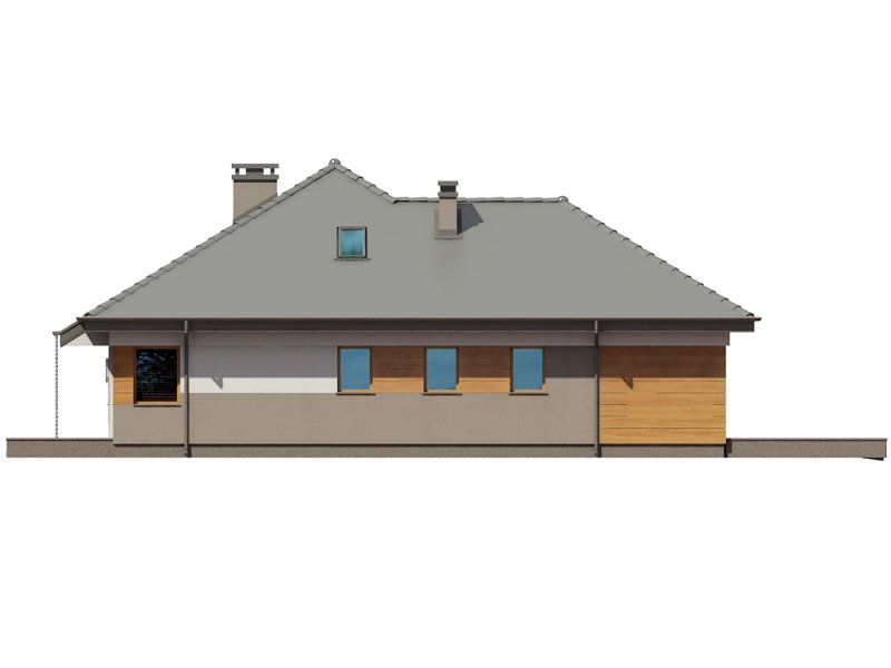 Niewielki parterowy dom jednorodzinny przeznaczony dla 4-5 osobowej rodziny wyposażony w przestronny salon z kominkiem , kuchnię i trzy sypialnie. Mimo małych gabarytów dom spełnia wszystkie podstawowe funkcje mieszkalne oraz posiada garaż dwustanowiskowy i kotłownię (piec gazowy, olejowy lub kotłownia na paliwo stałe). Optymalne zagospodarowanie powierzchni sprawia, że ten niewielki dom posiada wszelkie elementy potrzebne do komfortowego mieszkania. Poprzez otwarcie kuchni i aneksu jadalnego na salon uzyskano jedną wielką przestrzeń o przenikających się funkcjach użytkowych. Istnieje także wersja domu z garażem jednostanowiskowym o nazwie HOBBIT IVN.