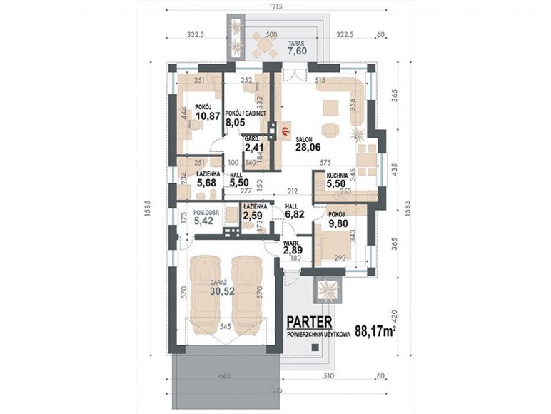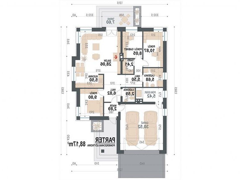 | dach | o konstrukcji drewnianej, pokryty dachówką ceramiczną, cementową lub blachodachówką |