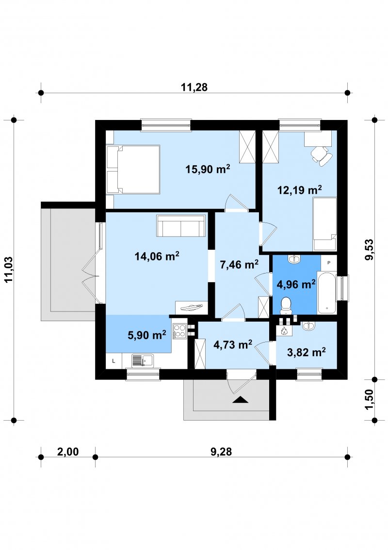 - Min. wymiary działki 17.53x17.28 m