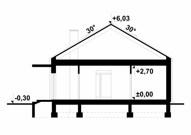 - Kąt nachylenia dachu 30.00°