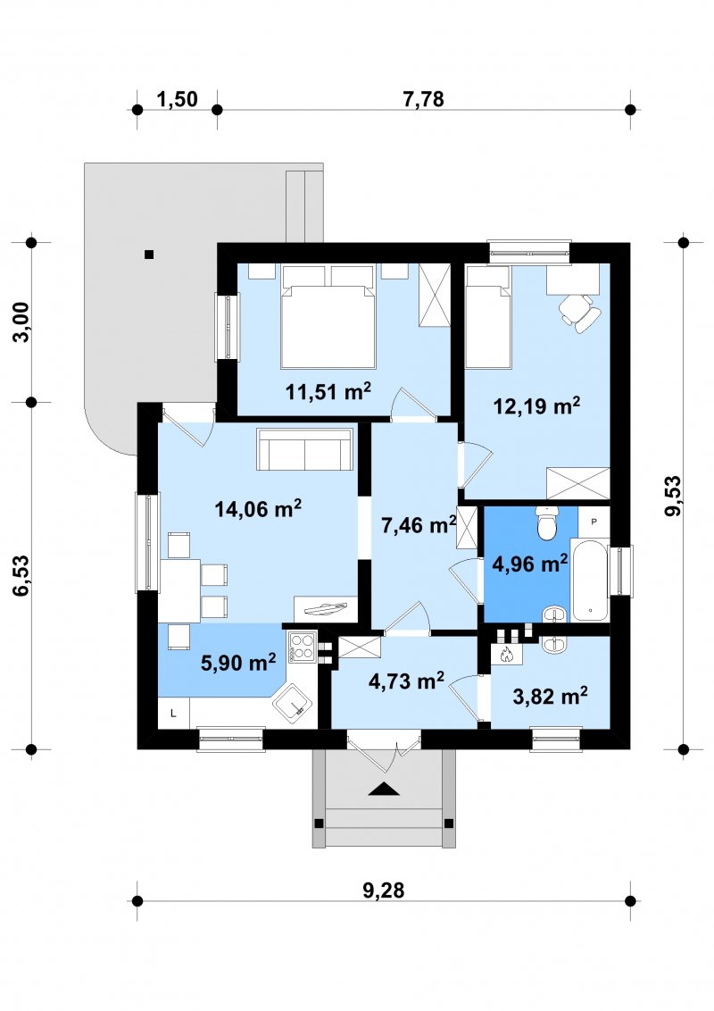 - Powierzchnia zabudowy 92.41 m²