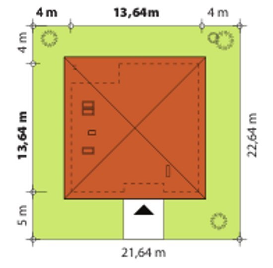 - Min. wymiary działki 22.64x21.64 m