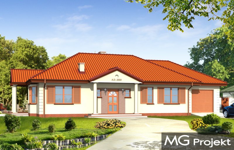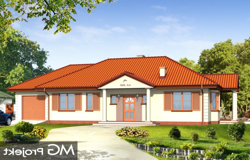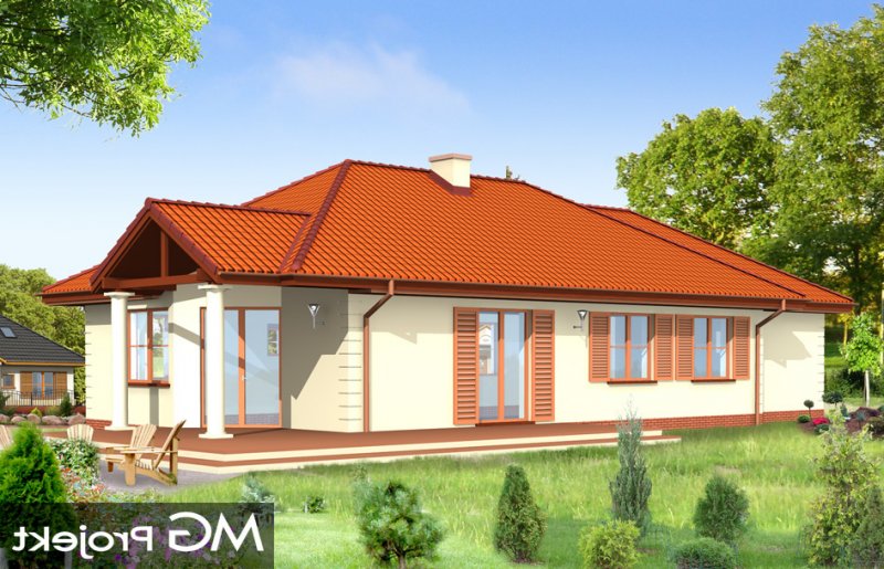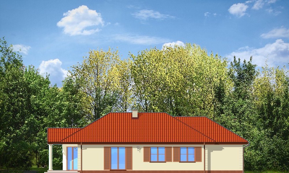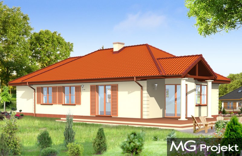 Jak marzenie 3 to wygodny, rozłożysty dom parterowy dla cztero-pięcioosobowej rodziny. Projekt domu jednorodzinnego o tradycyjnej architekturze nawiązującej do dworku. Program pomieszczeń na parterze - z rozdzieloną funkcją dzienną i intymną - nocną można wzbogacić o poddasze do częściowego zagospodarowania. Duży salon z wyjściem na zadaszony taras i aneks jadalny z wykuszem dają poczucie przestronności. Dom można lokować na działce o niekorzystnym ustawieniu względem stron świata lub na wąskiej parceli z ogrodem z boku domu. Pracownia posiada również projekt w odbiciu lustrzanym.