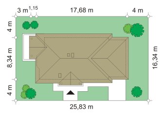 - Min. wymiary działki 25.83x16.34 m