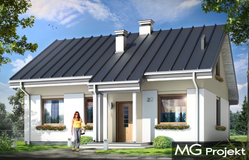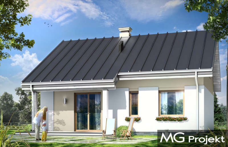 Kajtek to niewielki, przeznaczony dla trzy-czteroosobowej rodziny dom jednorodzinny. Budynek parterowy, przekryty dwuspadowym dachem. Prosta bryła domu połączona z nowoczesnym detalem i zastosowanymi materiałami tworzą udaną całość. Dom Kajtek ma bezpretensjonalny a zarazem oryginalny wygląd. Wnętrze mieści w sobie wygodne trzypokojowe mieszkanie, z salonem, półotwartą kuchnią, dwiema sypialniami, łazienką i kotłownią dostępną z przedsionka. Po schodach można dostać się na strych, który - choć w projekcie traktowany jako nieużytkowy - bardzo łatwo można zaadaptować na poddasze użytkowe z dodatkowymi pokojami. W projekcie zastosowano oddzielenie części dziennej od nocnej - z sypialniami. W salonie centralnym elementem jest kominek, oraz zabiegowe ozdabiające wnętrze schody. Szerokie drzwi balkonowe otwierają widok na częściowo zadaszony taras i ogród. Pracownia posiada odbicie lustrzane projektu.
