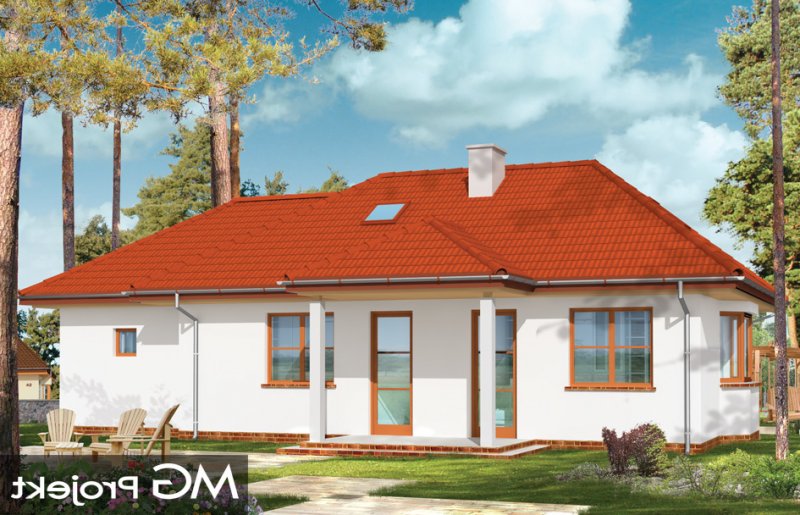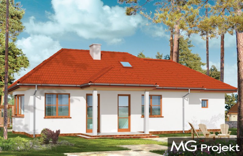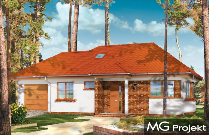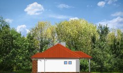 Klejnot z garażem to nieduży jednorodzinny dom dla trzyosobowej rodziny lub młodego małżeństwa z małymi dziećmi. Projekt domu w odróżnieniu od wersji podstawowej posiada dobudowany garaż. Budynek może być również użytkowany jako letniskowy. Prosta bryła bez udziwnień umożliwia łatwą i tanią budowę. Dobrane zrównoważone detale architektoniczne sprawiają przy tym, że przyjemnie patrzy sie na domek. Wnętrze zaprojektowano z podziałem na strefy: dzienną i nocną. Projekt występuje również w wersji odbicia lustrzanego.