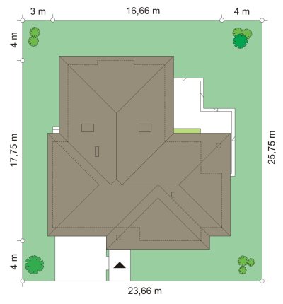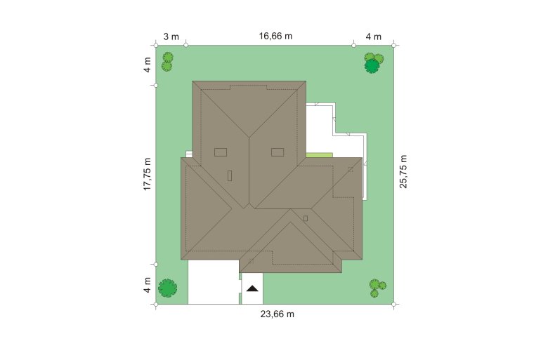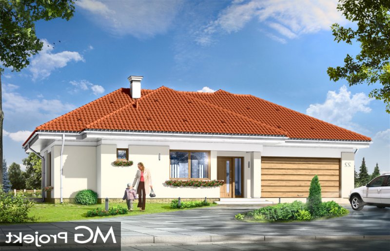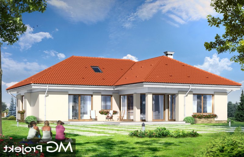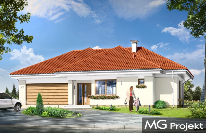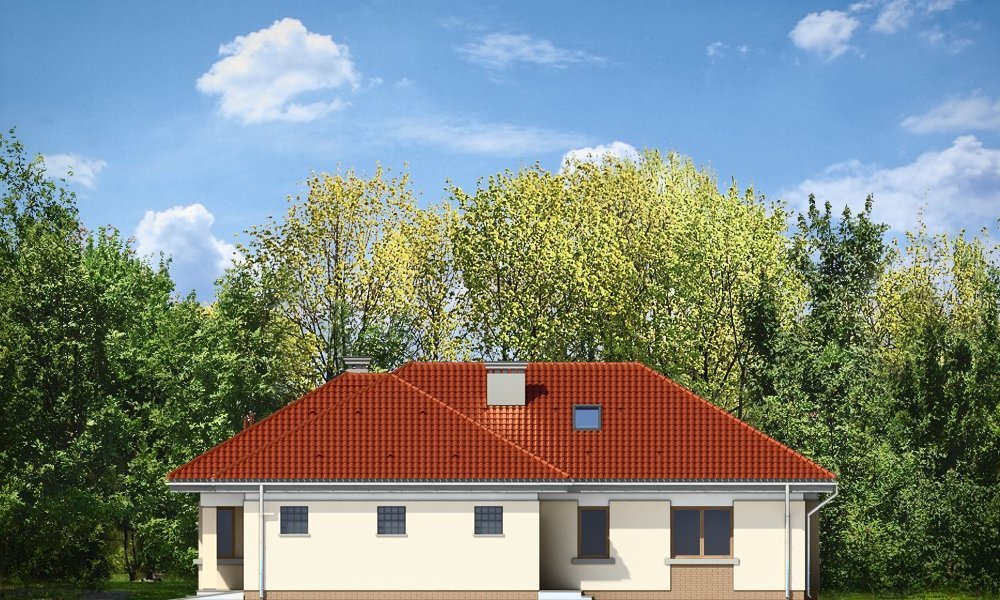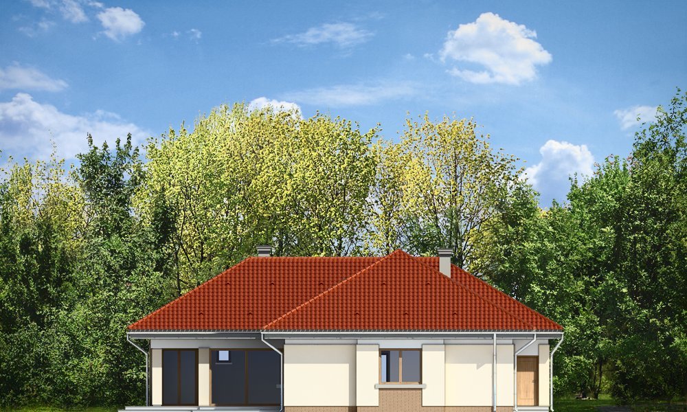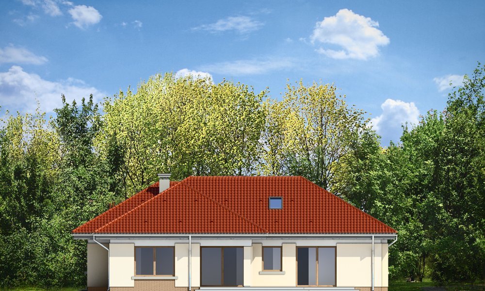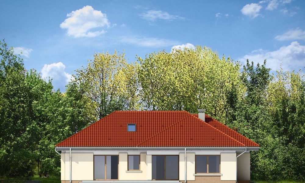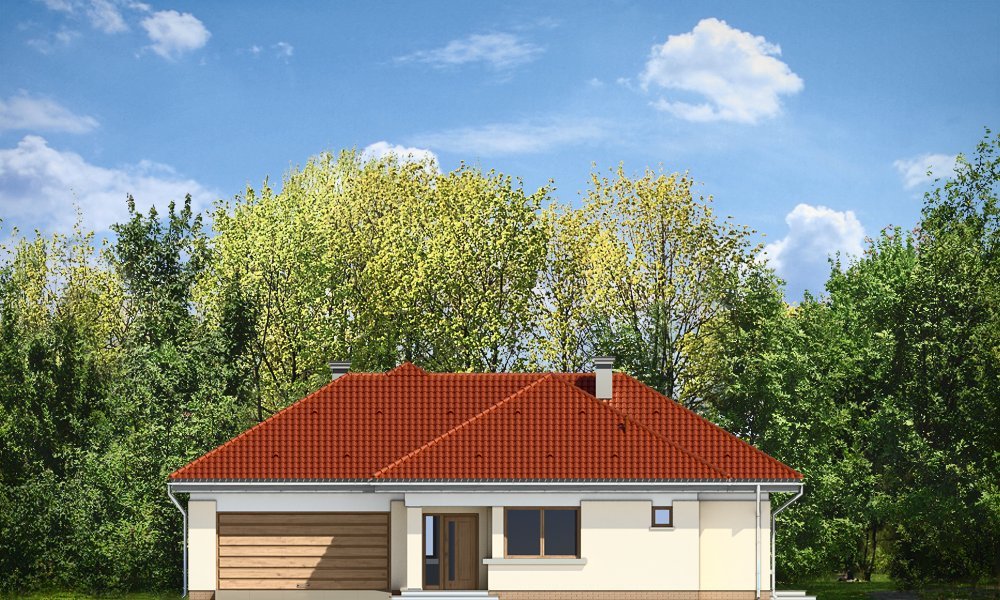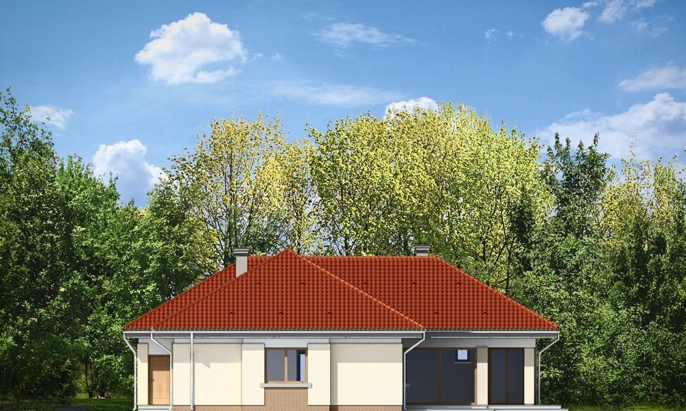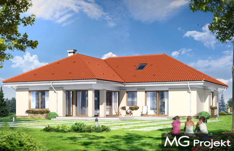Komfortowy 3 to budynek jednorodzinny dla rodziny cztero-pięcioosobowej. Budynek parterowy, przekryty wielospadowym dachem, ze strychem, który można zaadaptować na dodatkowe poddasze użytkowe. Dom jest mniejszym wariantem popularnego projektu Komfortowy. Wygląd zewnętrzny domu łączy w sobie elementy nowoczesności i tradycji. Tradycyjny dach kryty dachówką w połączeniu z niskimi parterowymi ścianami, z dużą ilością przeszkleń, z narożnymi oknami i oknami sięgającymi podłogi, tworzą udane połączenie. Dom wtapia się w otaczający go ogród i zachowuje ludzką skalę. Ze wszystkich pomieszczeń jest bezpośredni widok i kontakt z ogrodem. Ponieważ dom jest parterowy - wszystkie pomieszczenia znajdują się na jednym poziomie, dając niezrównaną wygodę mieszkańcom. Wnętrze podzielono na część dzienną - z salonem, oraz nocną - z sypialniami. Dodatkowo wydzielono też przestrzeń gospodarczą, z dwustanowiskowym garażem i kotłownią - dostępnymi z przedsionka. Pokój dzienny, z centralnie usytuowanym kominkiem, oraz pięknym narożnym przeszkleniem - otwarciem na ogród, w połączeniu z jadalnią, holem i kuchnią, tworzą ogromną przestrzeń dziennego użytkowania dla domowników. Dodatkową ozdobą są niewątpliwie schody na strych. Strych można zamknąć jako nieużytkowy, lub zaadaptować jako dodatkowe studio z pustką nad salonem. W części nocnej znajdują się trzy sypialnie, z sypialnią rodziców z własną garderobą i wyjściem na taras, oraz duża łazienka i dodatkowy pokój - np. gabinet. Pracownia dysponuje także odbiciem lustrzanym projektu.