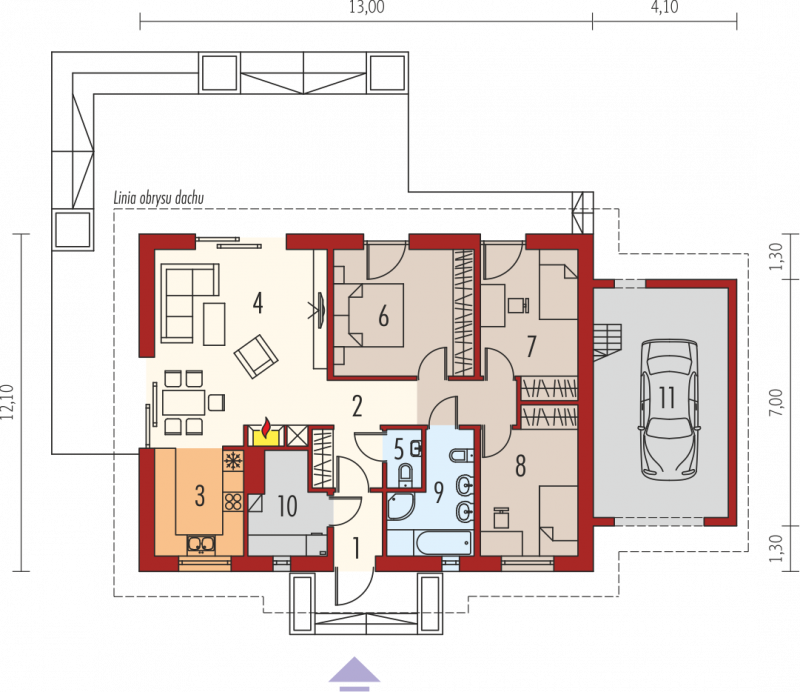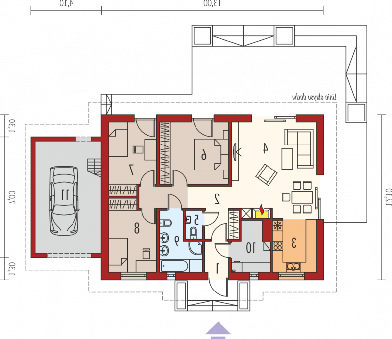 - Dach o konstrukcji drewnianej pokryto dachówką płaską lub inną o podobnych parametrach